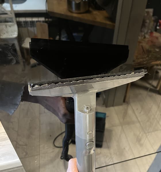 Следующая насадка имеет широкую зону обработки, резиновые накладки и узкие отверстия для выхода и засасывания жидкости. Она предназначается для мытья стекол, зеркал и плитки.
