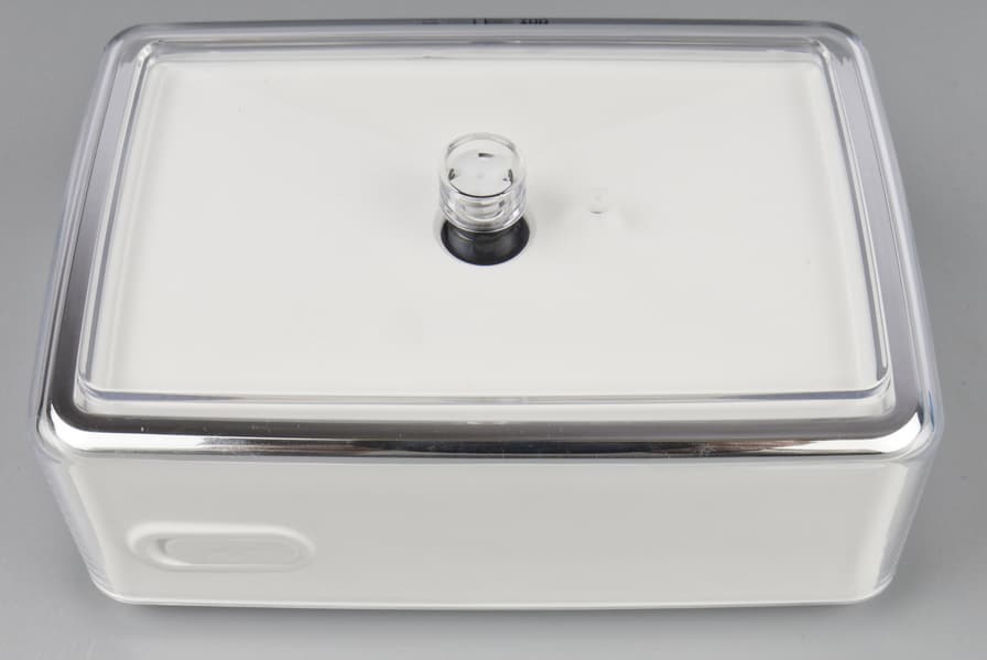 Сверху на ирригаторе мы наблюдаем пластиковую белую крышку — она просто надевается на бак и никак не фиксируется.