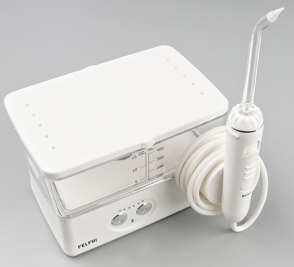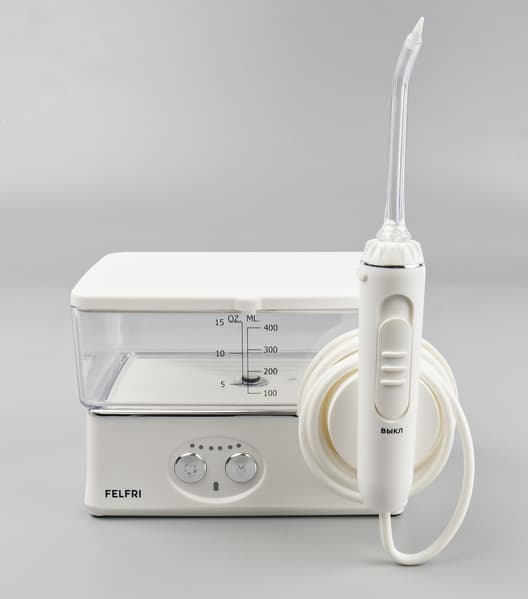 В большей степени опыт использования Felfri HF-7C оставил у нас положительные впечатления. Отсутствие провода это несомненное преимущество этой модели — можно поставить прибор куда угодно, даже не кухню и не зависеть от розетки. Благодаря ирригатору в полости рта остается приятное ощущение свежести и чистоты, которое сохраняется много дольше, чем после классической чистки зубов. Прибор справился с чисткой в труднодоступных местах, а благодаря широкому выбору и легкому переключению режимов работы, мы смогли сделать настоящий десенный массаж после которого было приятное ощущение бодрости.