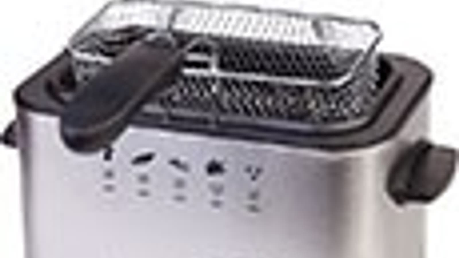 Модель по-немецки лаконична: прямоугольный металлический корпус, проволочная корзина, крышка с небольшим смотровым окном. Система управления состоит из поворотной ручки, вокруг которой размещено обозначение температуры и световых индикаторов нагрева и работы.