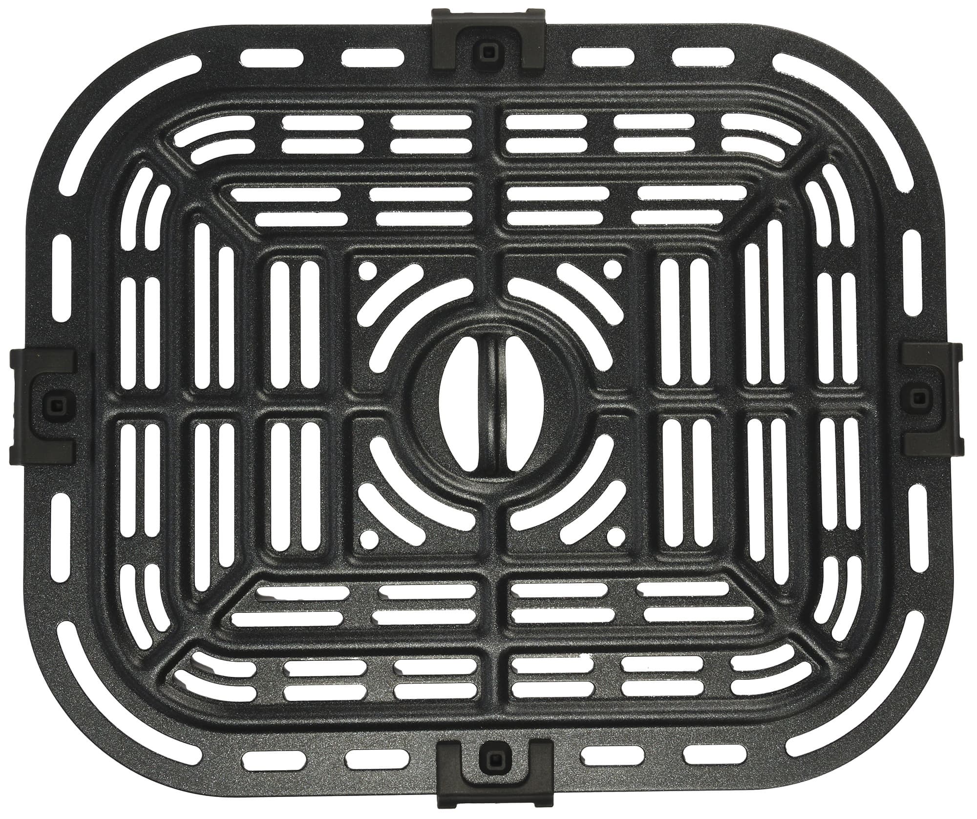 Дно и боковые стенки корпуса внутри изготовлены из металла. Сверху по центру размещен открытый нагревательный элемент. Над ним — вентилятор, который обеспечивает конвекцию во время работы аэрогриля.
