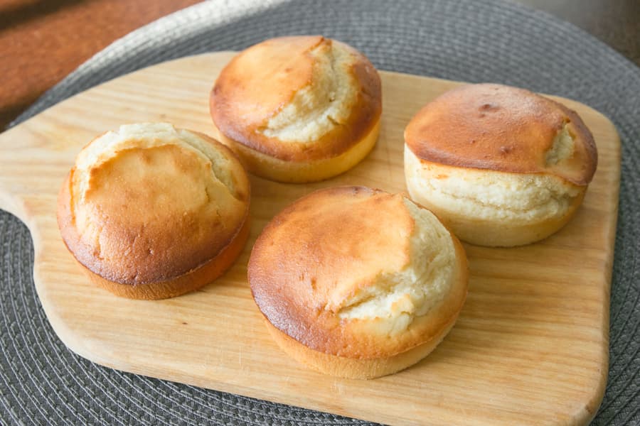 По совету производителя из электронной книги рецептов мы накрыли кексы фольгой и на всякий случай снизили нагрев до 160 °C, добавив к оставшемуся времени еще 10 минут. Итого 30 минут, и вот что у нас получилось.
