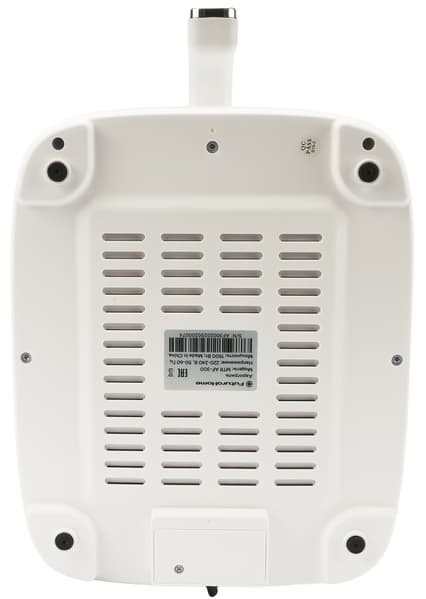 Корпус устойчиво стоит на четырех ножках с резиновыми вставками. На дне мы также видим серебристый шильдик с краткой технической информацией о приборе.