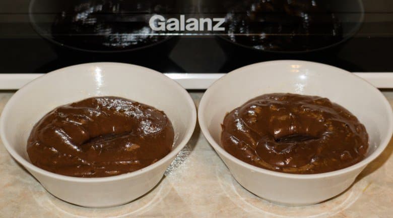 Растопили в стеклянной миске сливочное масло. Добавили сахар, молоко и яйцо. Хорошо перемешали и добавили просеянную муку, какао и разрыхлитель. Размешали массу до однородности. В результате получили тесто средней густоты.