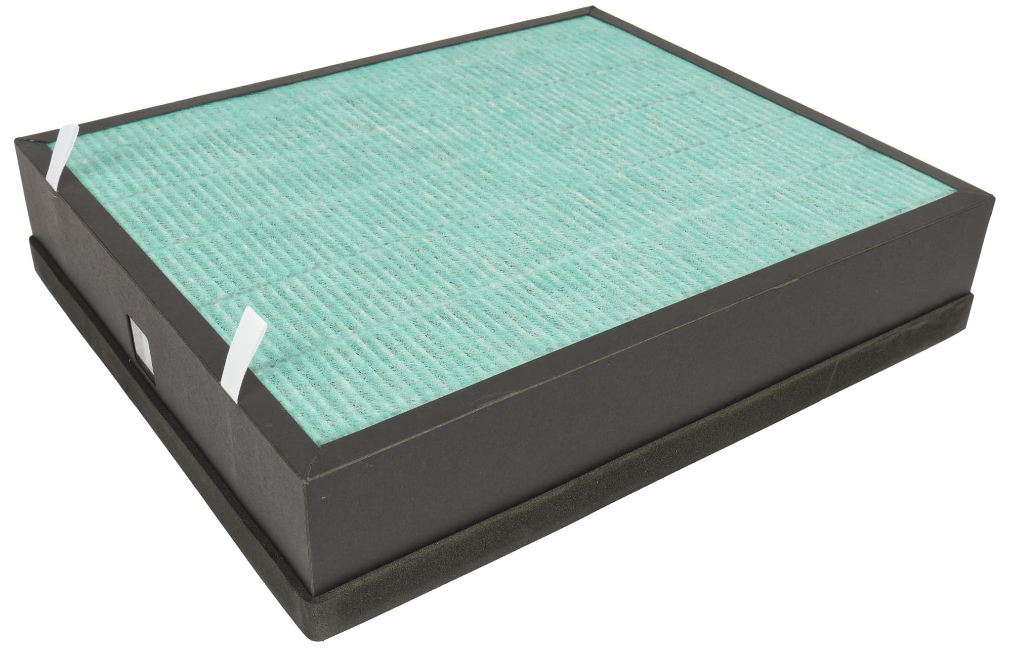 Последняя ступень механической фильтрации — HEPA-элемент класса H13, задерживающий, согласно спецификации, до 99,95% взвешенных частиц диаметром до 2,5 микрон.