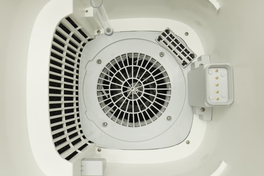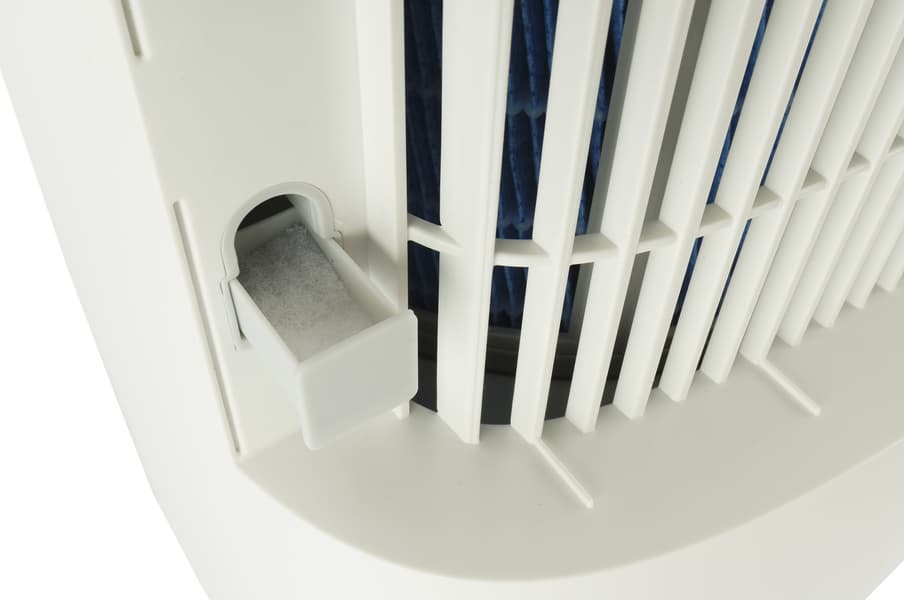 Выступающая из верхней части отсека решетка скрывает нагревательный элемент для сушки фильтра. Периодическое повышение температуры препятствует размножению болезнетворных бактерий на влажной поверхности и появлению неприятного запаха.