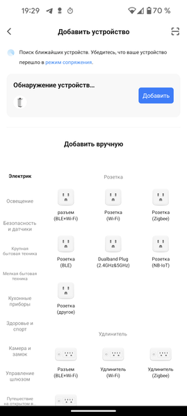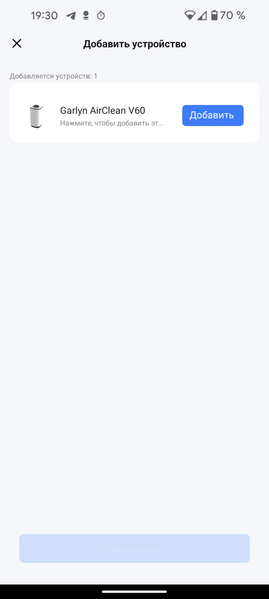 После включения климатического комплекса в розетку он автоматически переходит в режим готовности к подключению. Хотя на панели управления и предусмотрен принудительный перевод устройства в режим сопряжения, делать этого нам не пришлось. После нажатия на «Добавить устройство» на главном экране Smart Life появляется изображение прибора и кнопка «Добавить».