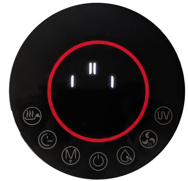 При выключении устройство переходит в режим активной сушки водяного фильтра: увлажнение отключается, а работающий вентилятор удаляет излишнюю влагу, чтобы предотвратить размножение бактерий. При этом прибор меняет цвет подсветки на красный, а на цифровом дисплее загорается предупреждающий символ. Чтобы прервать процесс сушки, следует еще раз нажать на кнопку «Питание».