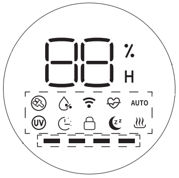 Под символами функций расположен четырехсегментный индикатор мощности увлажнения.