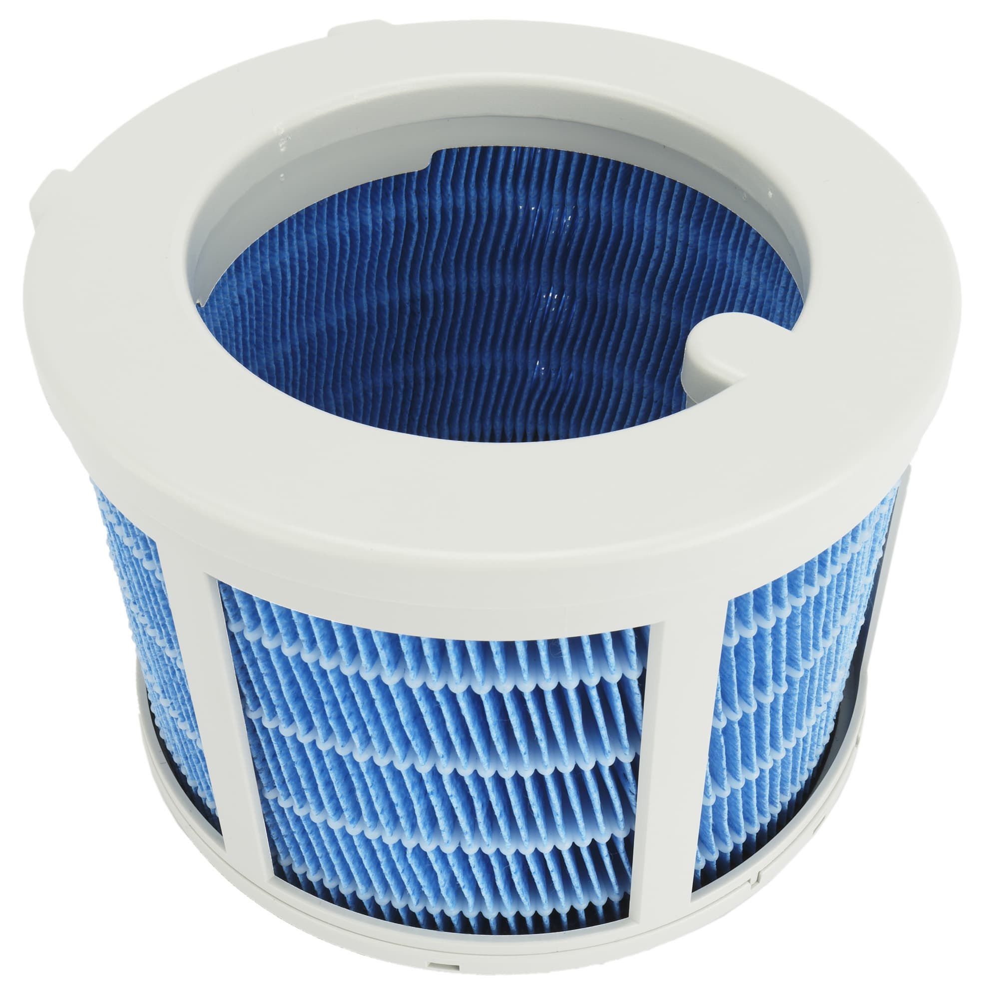 Увлажняющий фильтр представляет собой синюю гармошку цилиндрической формы, собранную в пластиковой обойме.
