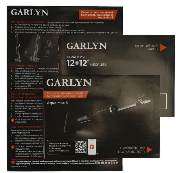 Руководство пользователя беспроводного моющего пылесоса Garlyn Aqua Max 5 изготовлено в виде 32-страничной брошюры формата А6. Глянцевая бумага качественная, плотная, так что документ спокойно переживет многократные обращения. Информация представлена только на русском языке.