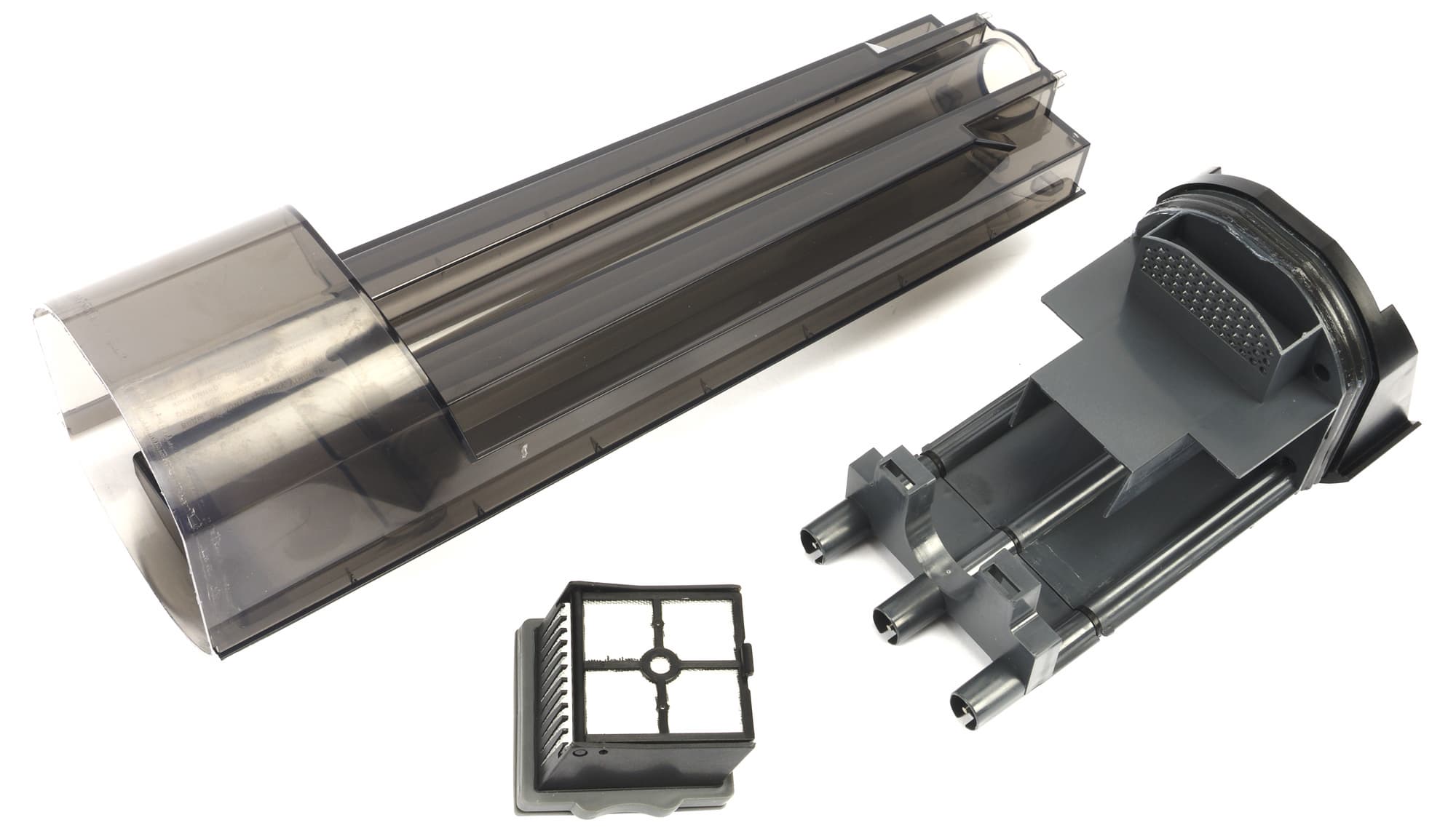 Модуль состоит из бака для жидкости и крышки контейнера, в которой размещается HEPA-фильтр с сетчатой крышкой. В крышку встроены три контакта, обеспечивающие работу датчика уровня жидкости.