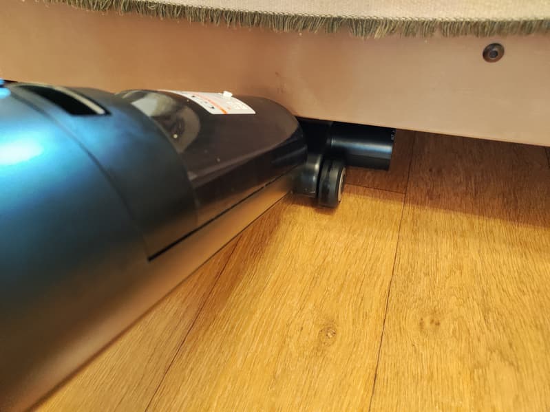 Несмотря на габариты, он достаточно маневренный, однако очистить с его помощью пол под невысокой кроватью или шкафами не получится — эти места придется убирать вручную или с помощью других устройств во время большой уборки. Благодаря особенностям конструкции и движения вес Garlyn Aqua Max 5 совсем не ощущается. Даже шестилетний ребенок с большим удовольствием управляет этим моющим пылесосом.