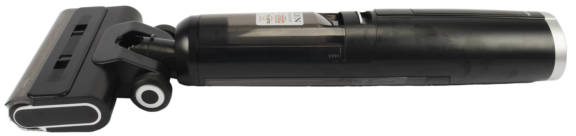 Большой разницы между работой в максимальном и стандартном режиме мы не уловили. Разве что работает пылесос чуть громче. Полного заряда аккумулятора хватает на сухую или влажную уборку пола трехкомнатной квартиры в даже режиме высокой мощности.