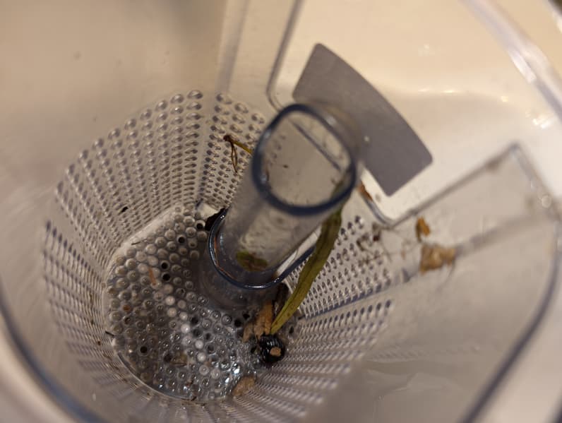 Благодаря сферическому закруглению на конце шахты резервуара на фильтр тонкой очистки брызги не попадают: после уборки мусор на ней остается совершенно сухим, и его тоже можно отправить в ведро. Фильтр рекомендуется очищать после каждого обслуживания контейнера.