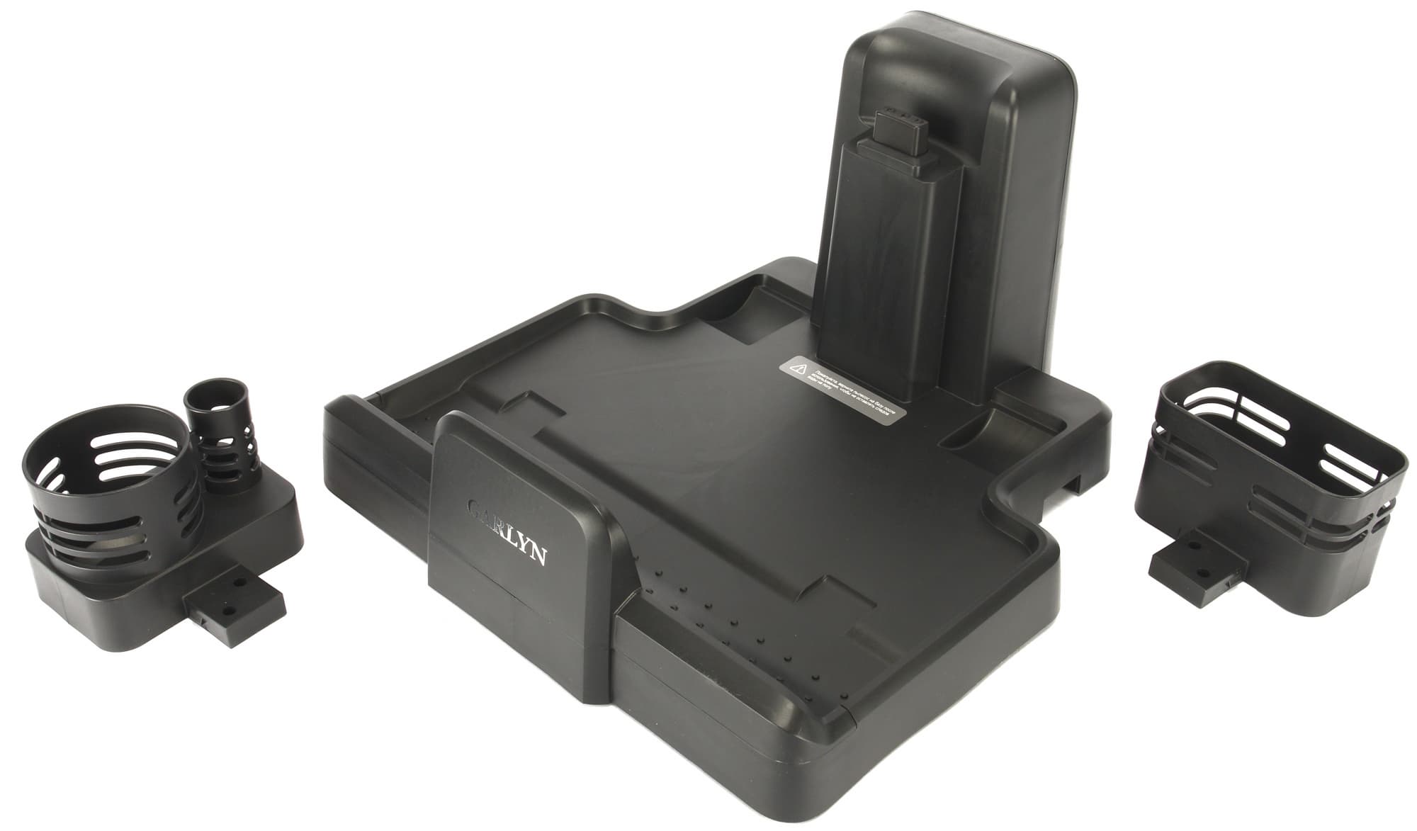 Две съемные корзины пристегиваются к базе справа и слева. Одна из них предназначена для хранения ротора и ершика, во вторую можно поставить флакон с моющим средством или положить сетевой адаптер.