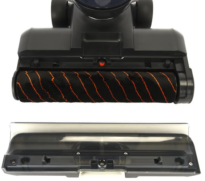 Шарнир насадки позволяет наклонять моторный блок параллельно поверхности пола. Благодаря такой конструкции пылесос может довольно далеко проникнуть в труднодоступные участки под мебелью.
