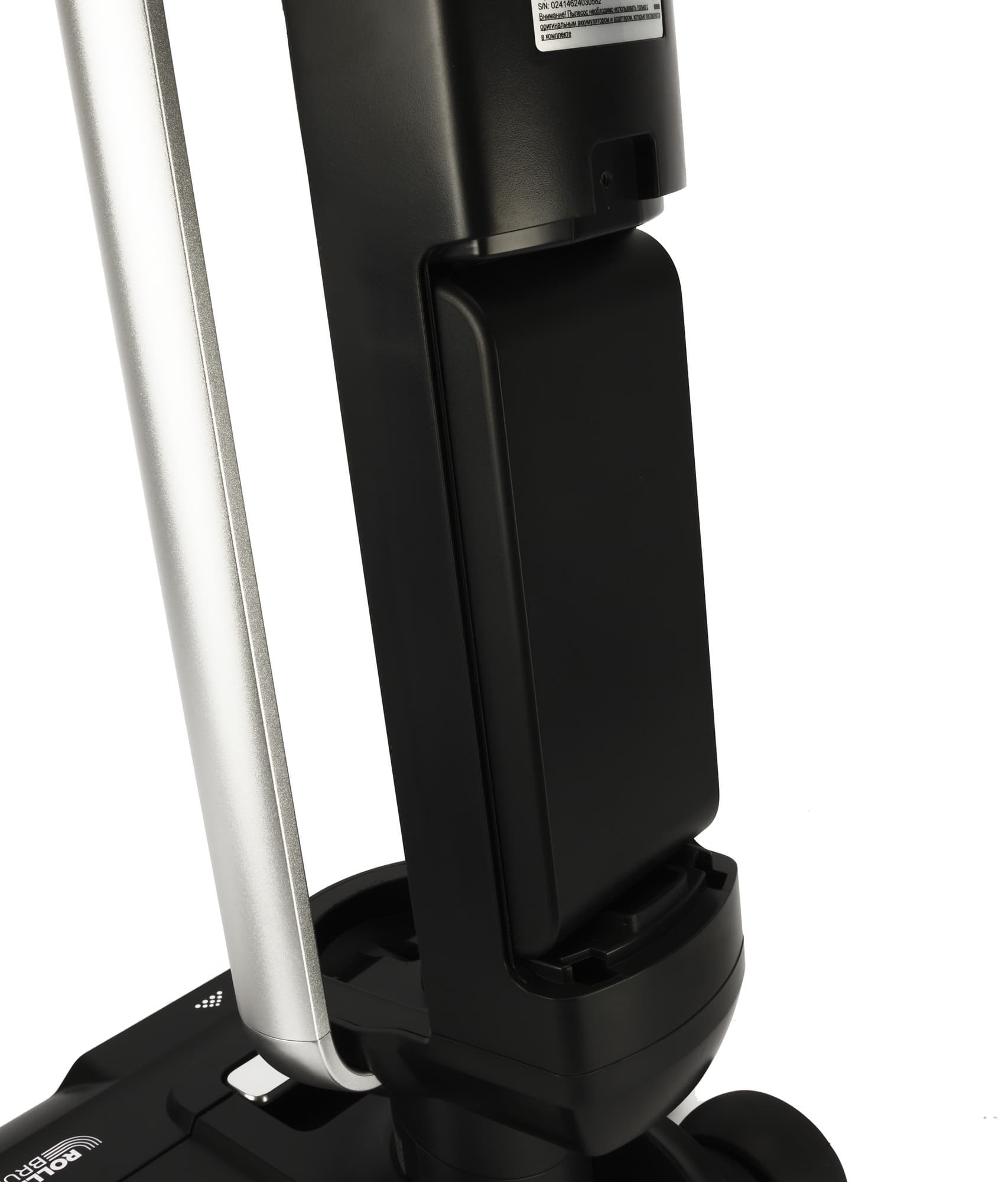 Если во время работы заряд аккумулятора падает ниже 20%, прибор зажигает предупреждающий сигнал на дисплее и понижает мощность всасывания до минимальной. Это позволяет выиграть несколько дополнительных минут для быстрого завершения работы.
