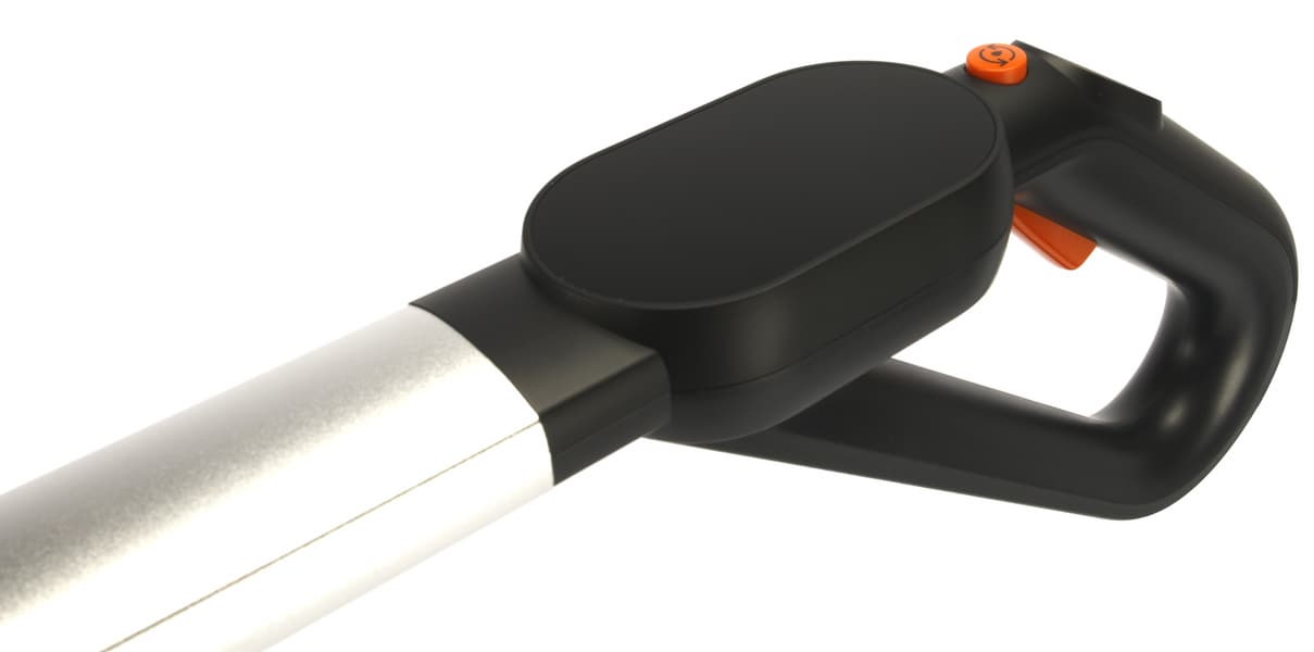 В отличие от большинства аналогичных устройств, аккумулятор у этой модели съемный. Он устанавливается в отсек в задней части моторного блока, закрытый пластиковой крышкой.