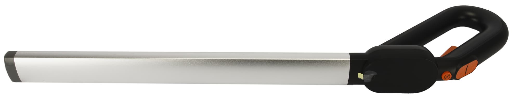 Металлическая удлинительная ручка с органами управления вставляется в моторный блок до щелчка.