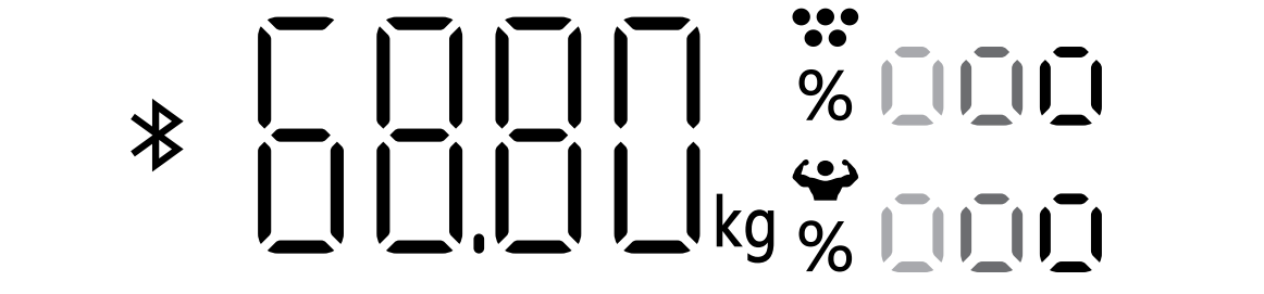 Справа от основного дисплея отображаются дополнительные параметры организма: процентные содержания жира и мышечной массы. Слева располагается индикатор активности интерфейса Bluetooth.