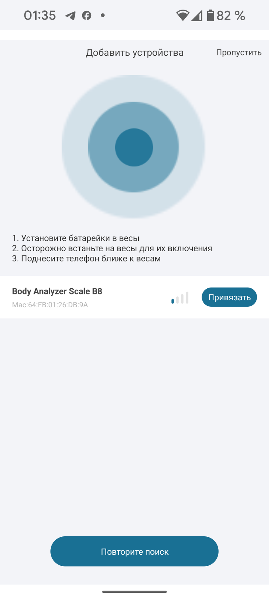 До первого сопряжения со смартфоном наше устройство измеряет только вес: остальные возможности прибора становятся доступны только после установки и настройки мобильного приложения.