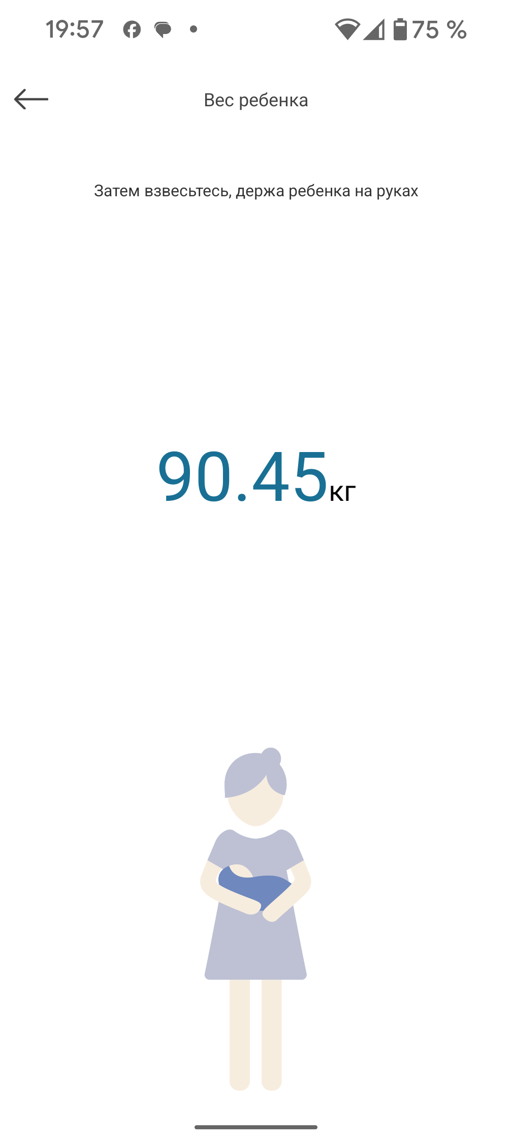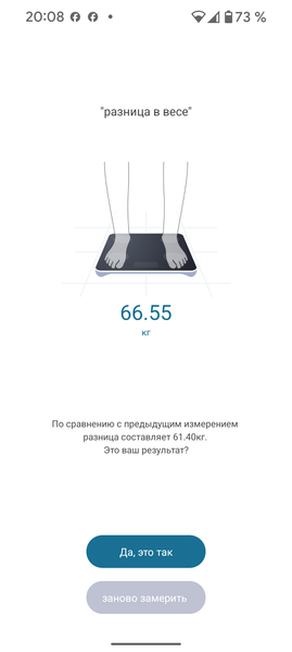 Измерения начинаются автоматически, их результаты отображаются на экране приложения в реальном времени. Вес пользователя прибор определяет почти мгновенно, а на вычисление других параметров требуется небольшое (около 10 секунд) время.