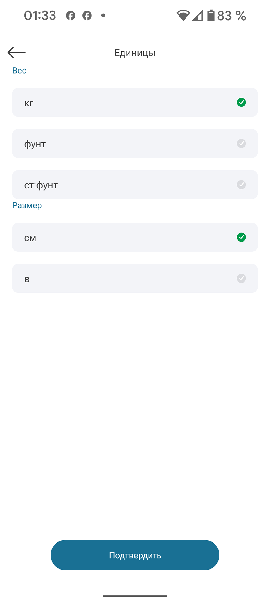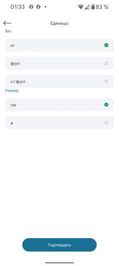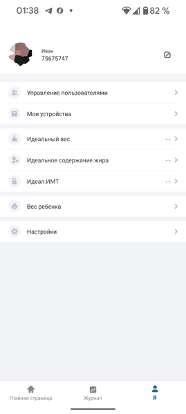В настройках профиля мы можем указать идеальный вес, к которому мы собираемся стремиться, желательные ИМТ и содержание жира. Здесь же мы можем сменить пользователя и перейти в настройки приложения.