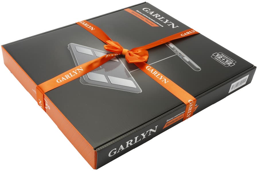 Компания Garlyn очень внимательно подходит к оформлению упаковки: каждый ее продукт приятно дарить и распаковывать. Наши весы поставляются в плоской коробке с узнаваемым фирменным дизайном, перевязанной шелковой лентой с символикой производителя. От повреждений при транспортировке подарочную упаковку защищает внешняя коробка из простого коричневого картона.