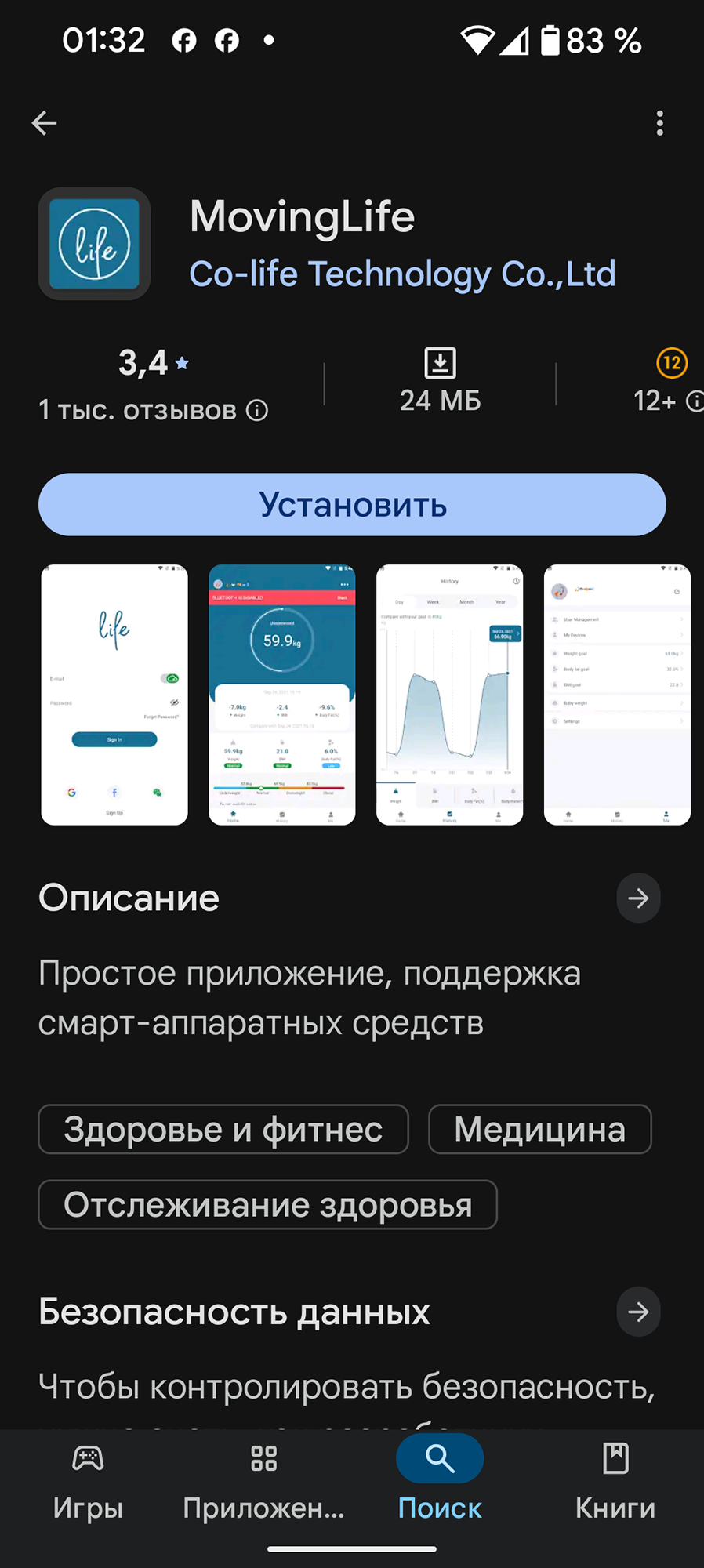 Для полноценного использование весов требуется скачать и установить приложение MovingLife (Co-life Technology).