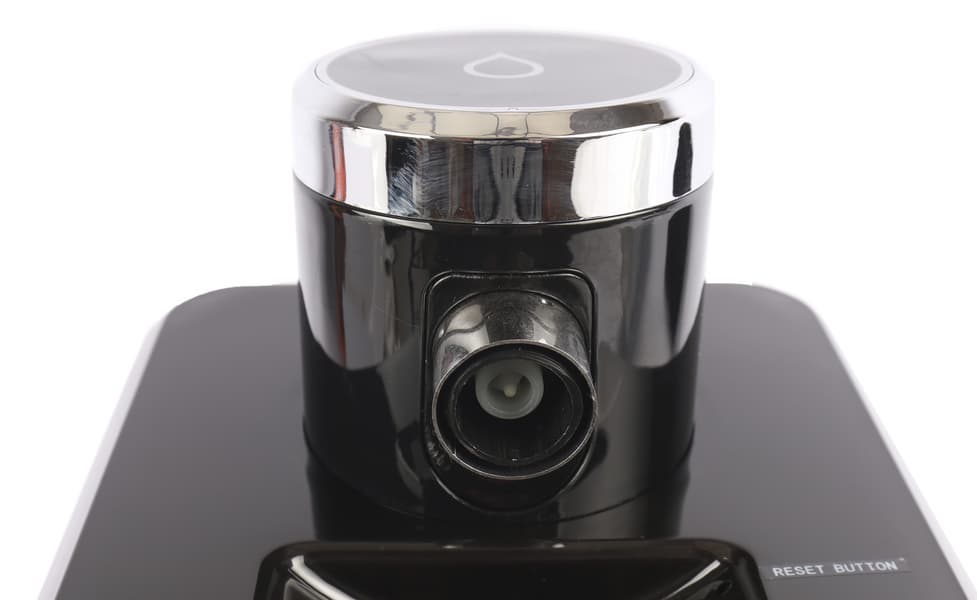 Перед первым использованием проводим дезинфекцию (так называет эту процедуру производитель, мы воздержимся от комментариев). Наполняем резервуар до максимальной отметки в 2,5 л. Добавляем в него 1-2 чайные ложки лимонной кислоты по рекомендации производителя. Подставляем под носик емкость подходящего объема, ведь нам нужно будет слить те самые 2,5 л. Жмем два раза, загорается зеленый индикатор, ждем окончания полного пролива воды. Затем подобным образом дважды прогоняем просто чистую воду, и аппарат готов к использованию.