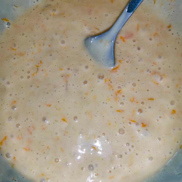 Для вафель сделали тесто из яиц, кефира, масла, муки, апельсинового джема и соды.