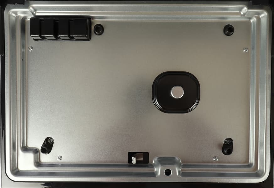 Далее обратим внимание на целых пять съемных панелей в комплекте. Все они взаимозаменяемы, могут устанавливаться в любой комбинации и обладают отличным антипригарным покрытием и теплоемкостью. Устанавливать панели несложно, нужно правильно вставить края панели в специальные ушки и вщелкнуть ее в корпус нажатием. Выщелкиваются панели нажатием кнопки сбоку справа.