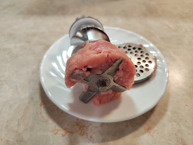 Методика предполагает измельчение охлажденного свиного окорока без костей, освобожденного от пленок и жира. В ходе опыта мы измеряем, какое количество мяса сможет измельчить прибор за одну минуту. При наличии трех перфорированных решеток переработка происходит на средней. Мясорубка Garlyn Grind Pro оснащена двумя решетками, с большим и средним диаметром отверстий, поэтому тестировать будем на средней.