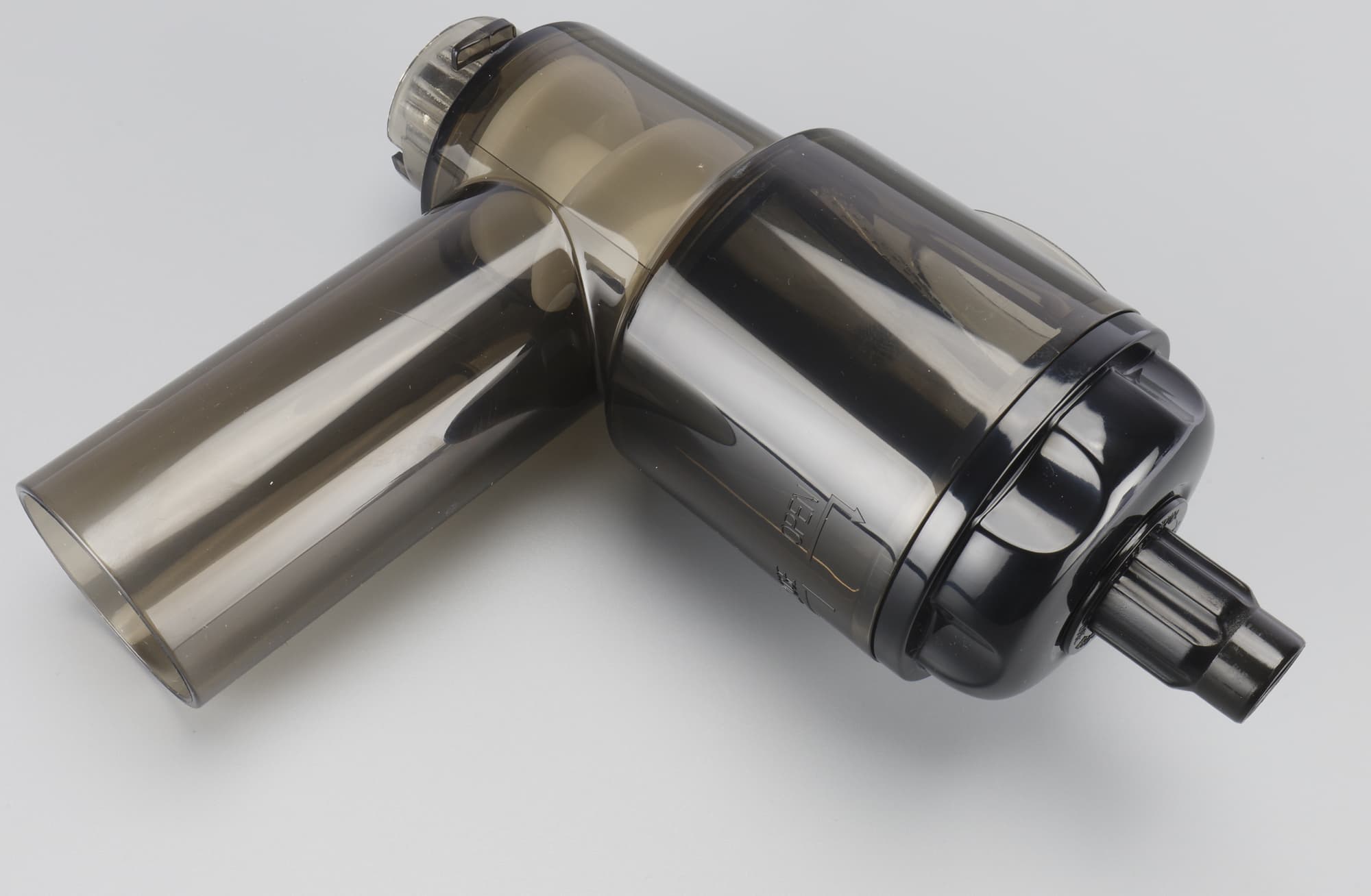 Сквозь прозрачный корпус пользователю будет удобно наблюдать за процессом переработки фруктов и ягод. Диаметр загрузочного отверстия в 5 см совпадает с размером загрузочного отверстия мясорубки, так что для этих двух насадок можно использовать один толкатель.