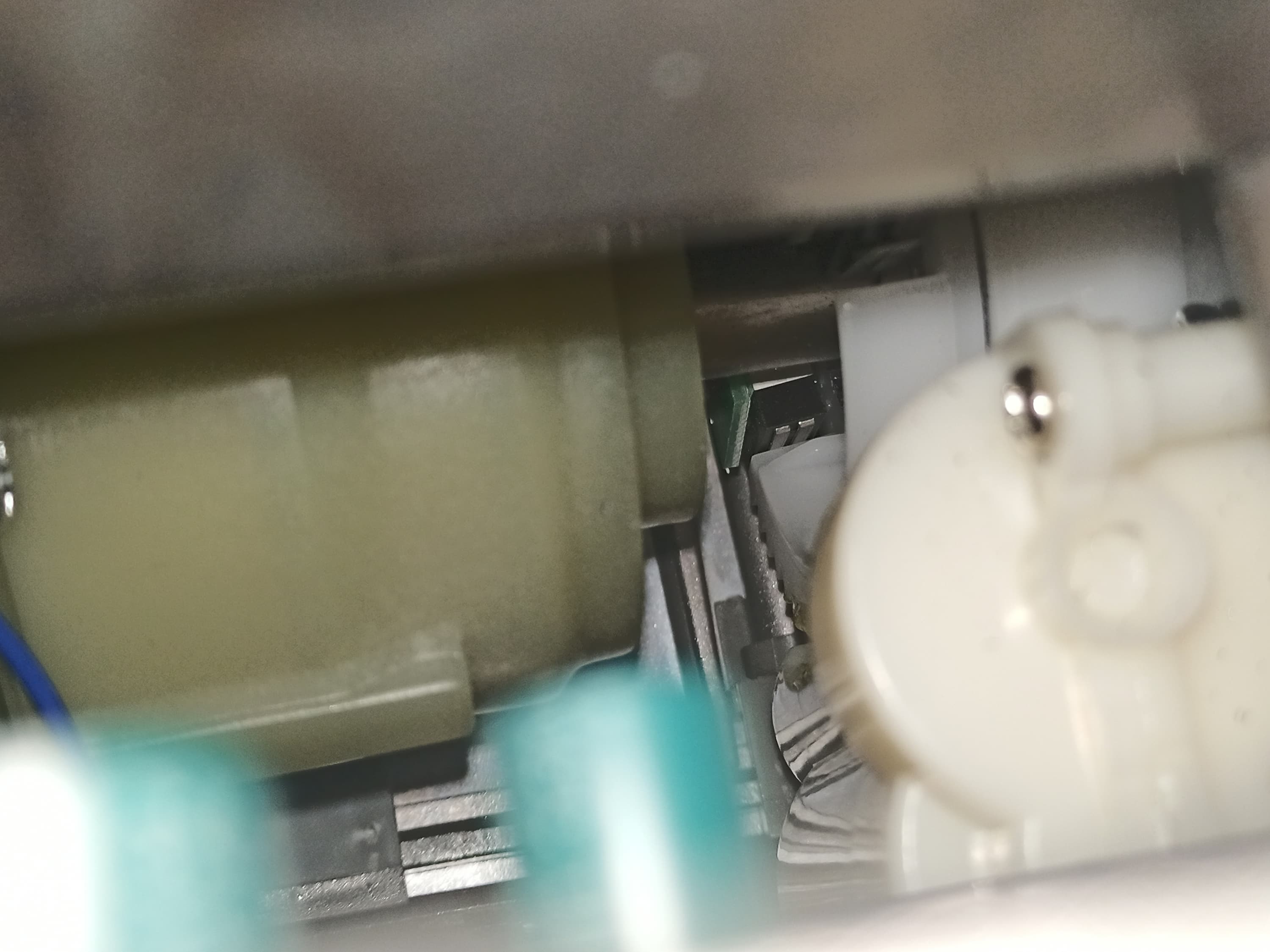 В глубине можно различить двигатель, к которому прикреплен планетарный, судя по форме, редуктор в пластиковом корпусе. На передней стенке мясорубки виден механизм автоматической фиксации насадок. Разглядеть больше нам не удалось.