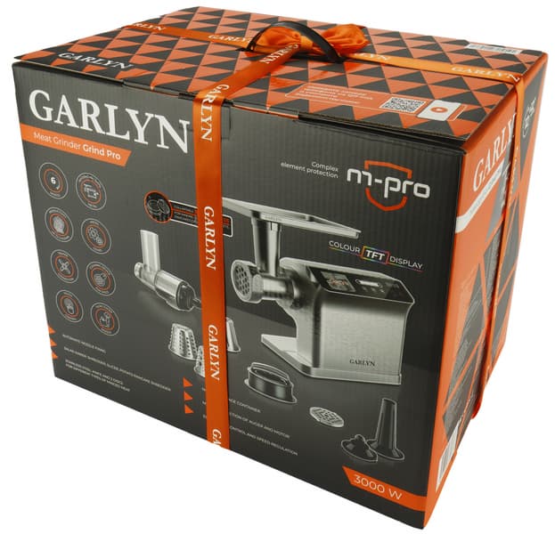 Иногда наша работа — это просто праздник какой-то, и упаковка Garlyn Grind Pro лишь подтверждает это. Такую мясорубку, заметим в скобках, не стыдно и жене подарить на 8 марта. Ветка мимозы и кокетливый бантик, вполне вероятно, на какое-то время обеспечат мужчину котлетами и прочими колбасами.