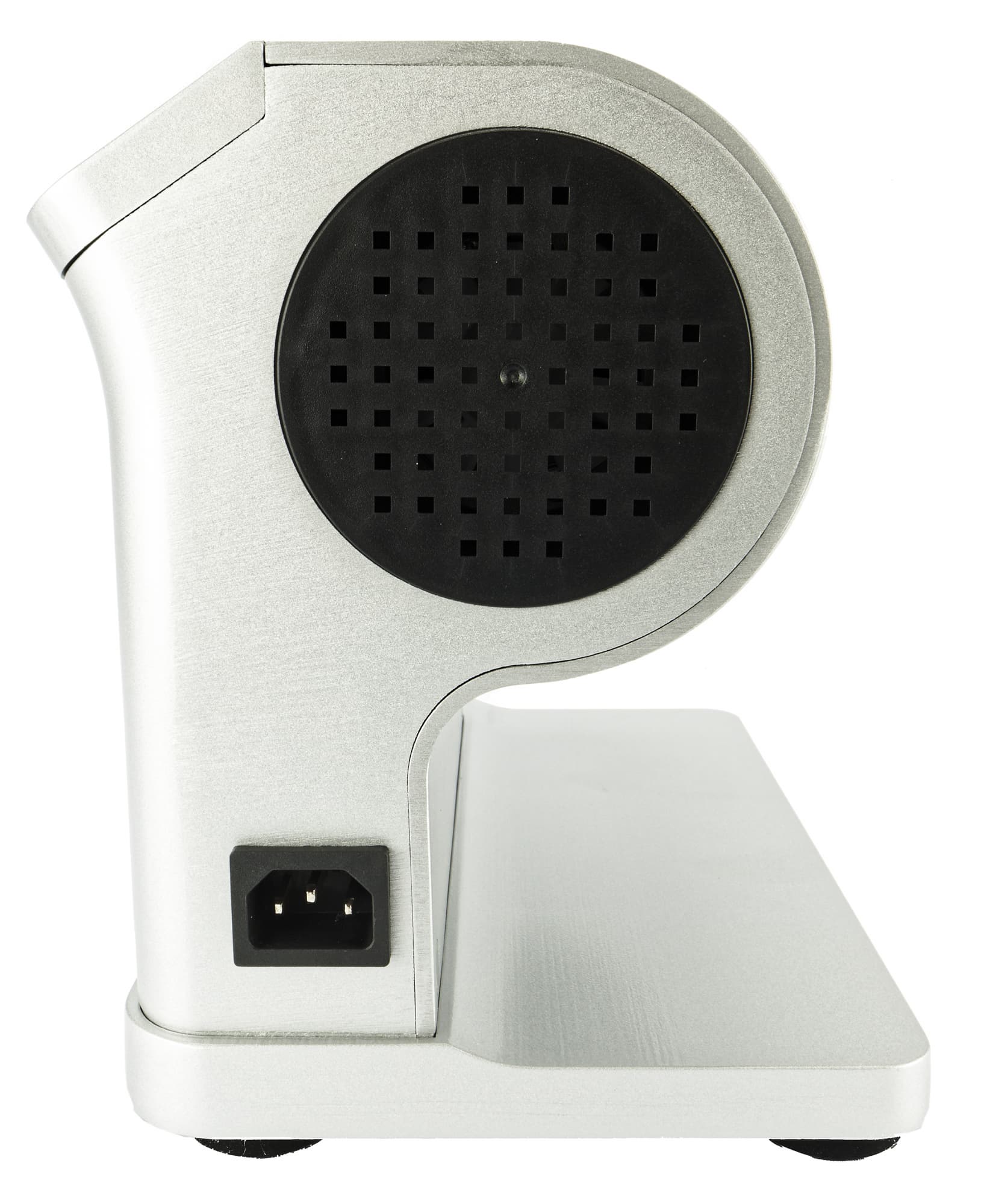 Стандартный сетевой шнур электропитания присоединяется в нижней части правой стороны корпуса. Длина шнура в 1 м представляется нам достаточной для использования прибора в бытовых условиях. Здесь же, но в верхней части, видна пластиковая заглушка с вентиляционными отверстиями.