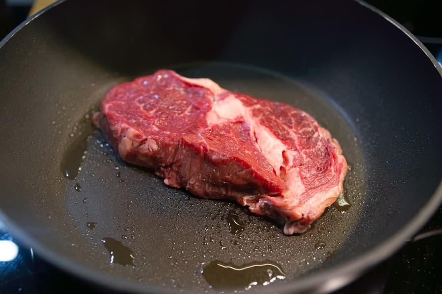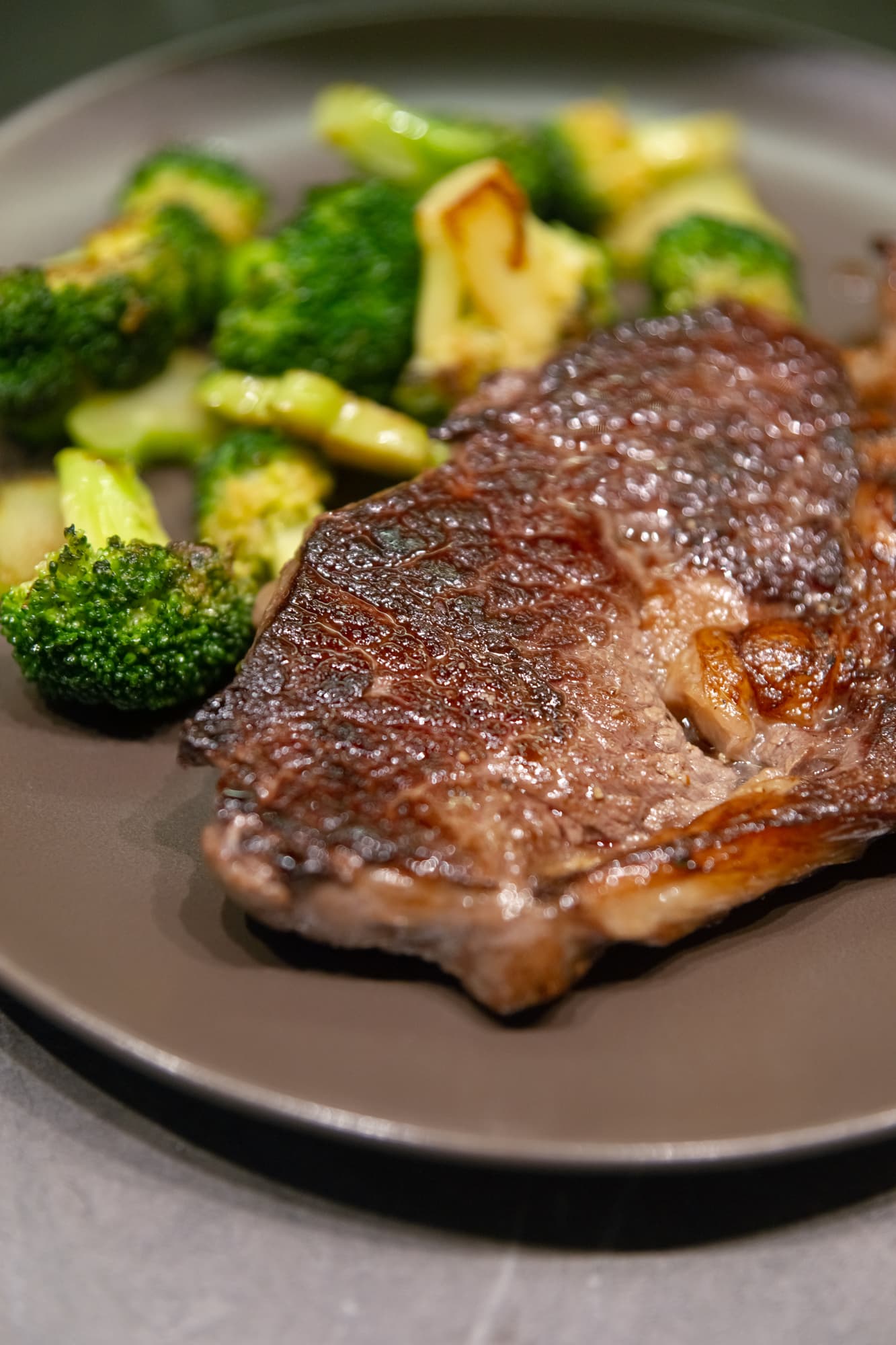 Стейки также жарились быстро и правильно — поверхность быстро запечатала сок внутри мяса и приобрела красивую корочку.