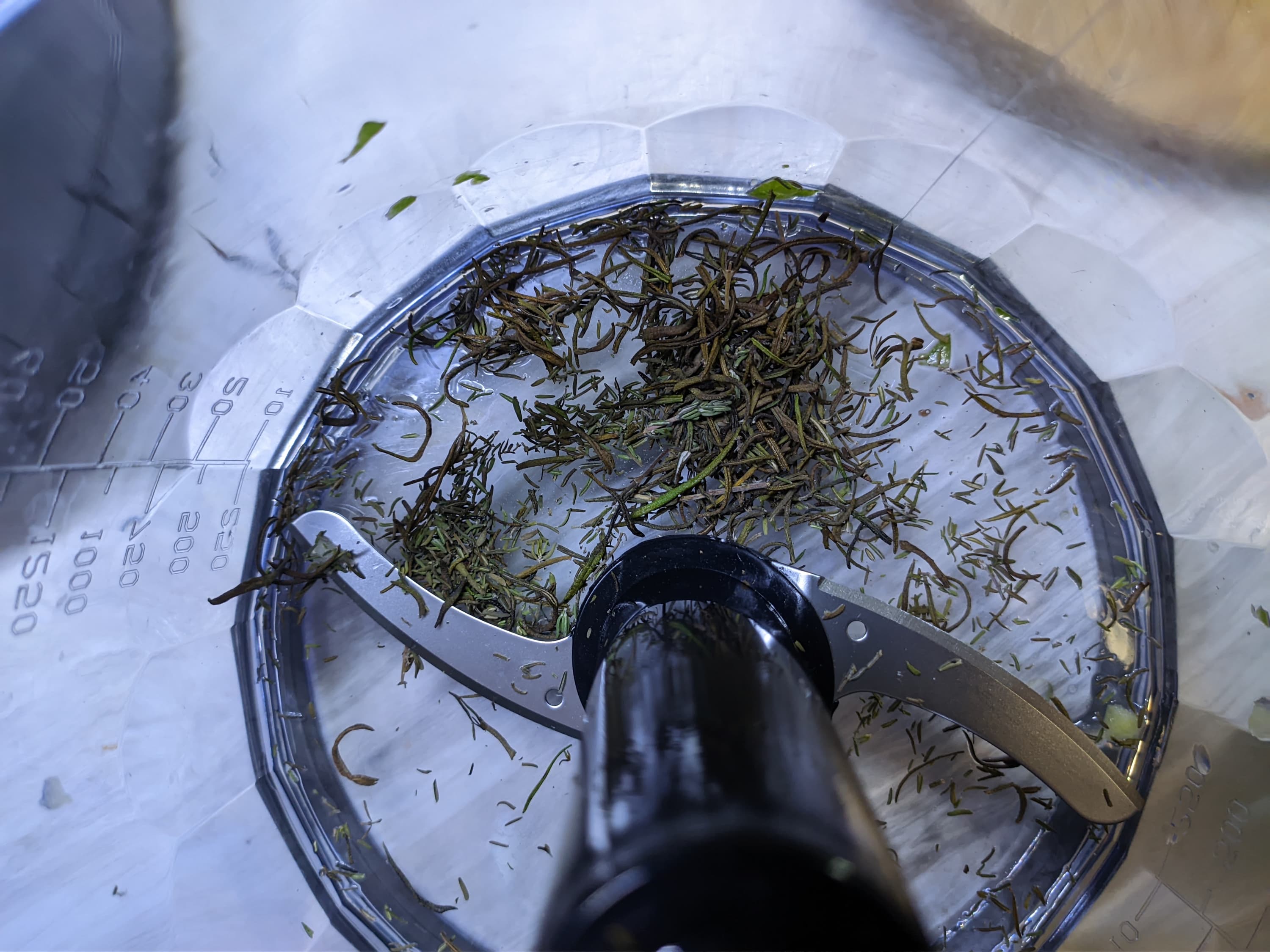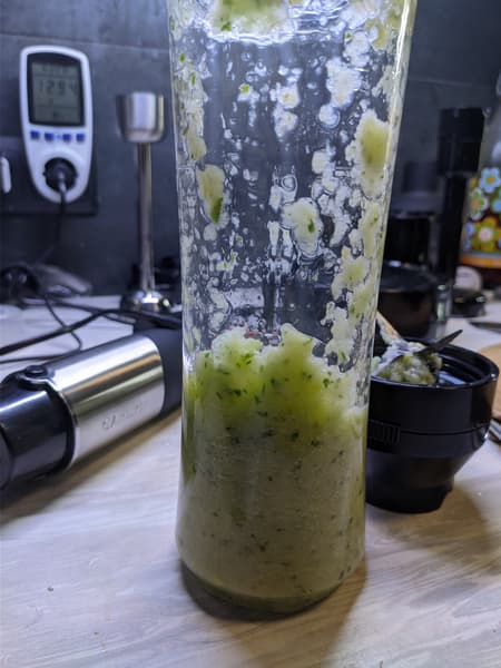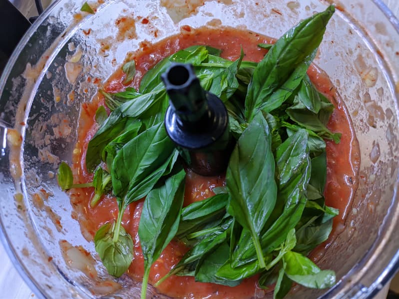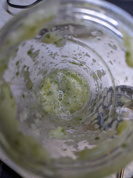 Еще 20 секунд на максимальном режиме — и блендер расправился с базиликом, превратив его в мелкие кусочки.