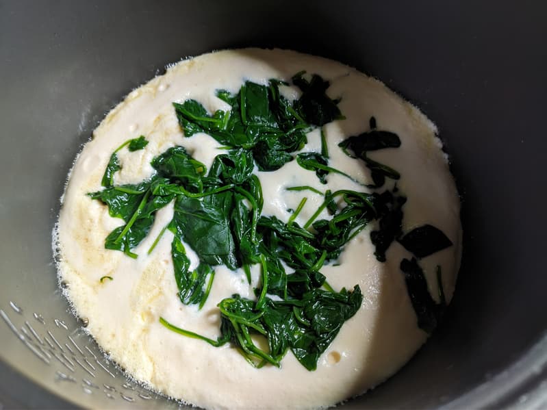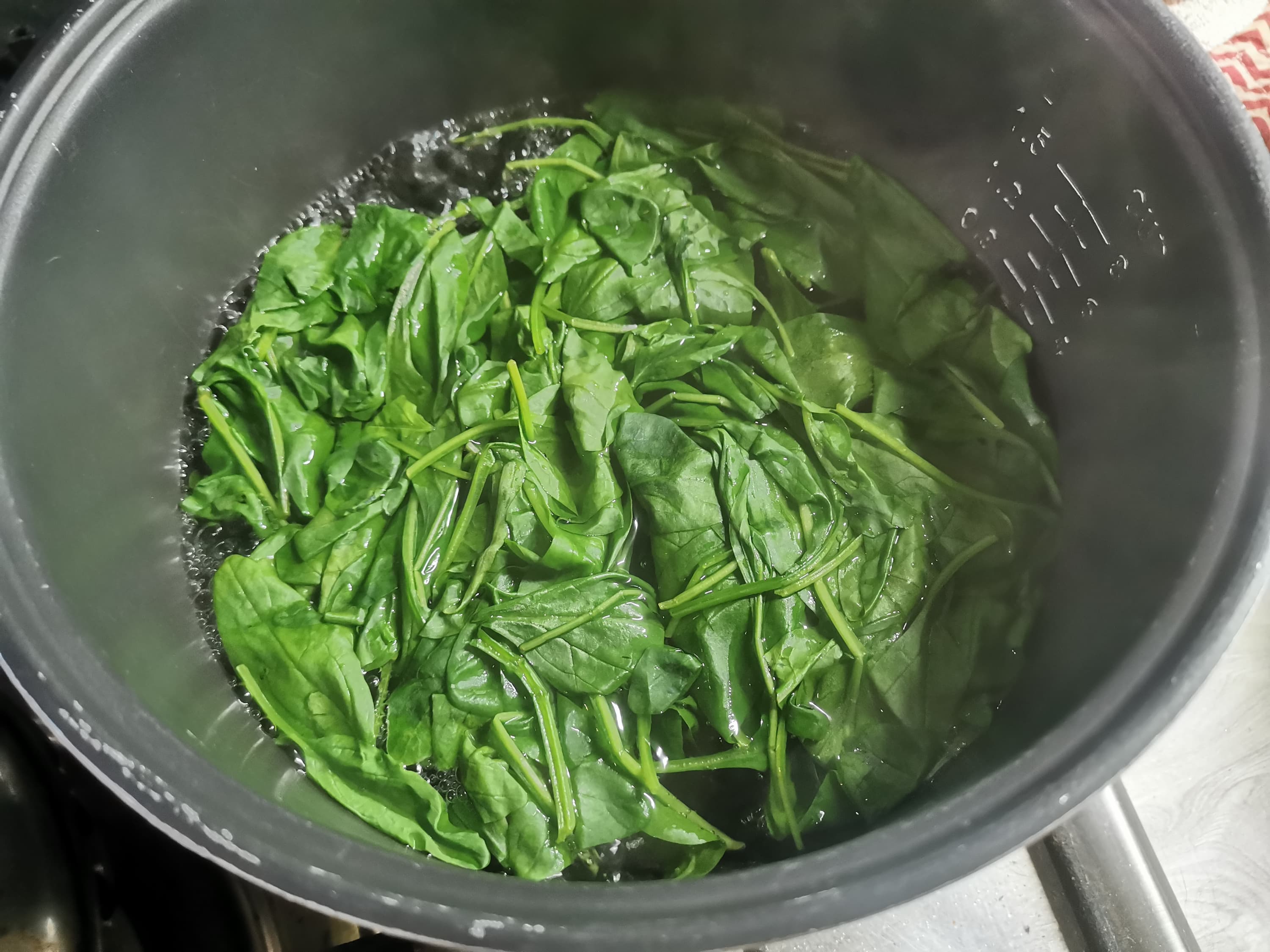 Мы сполоснули и ошпарили шпинат, чтобы он стал помягче.