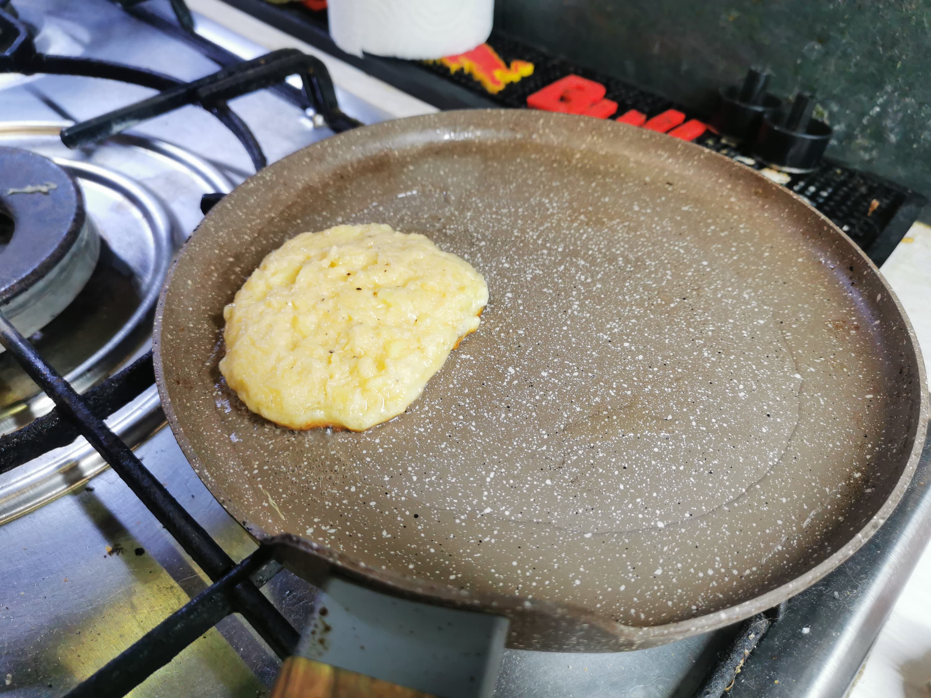 Мы решили не избавляться от пышных белков из прошлого теста и добавить их в наш омлет.