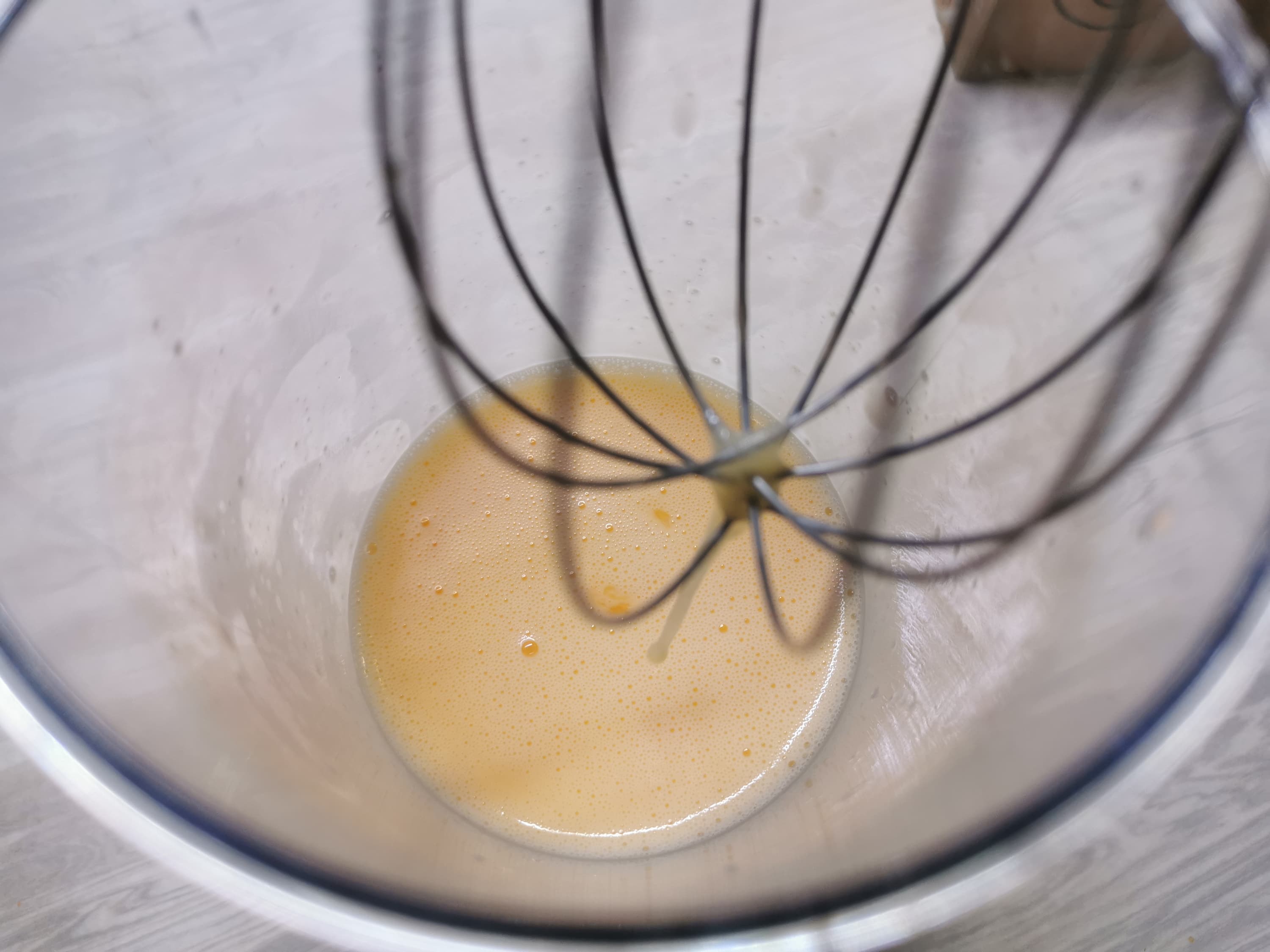 Еще 20 секунд смешивания на 3-й скорости — и мы получили прекрасную смесь для очень пышного омлета.