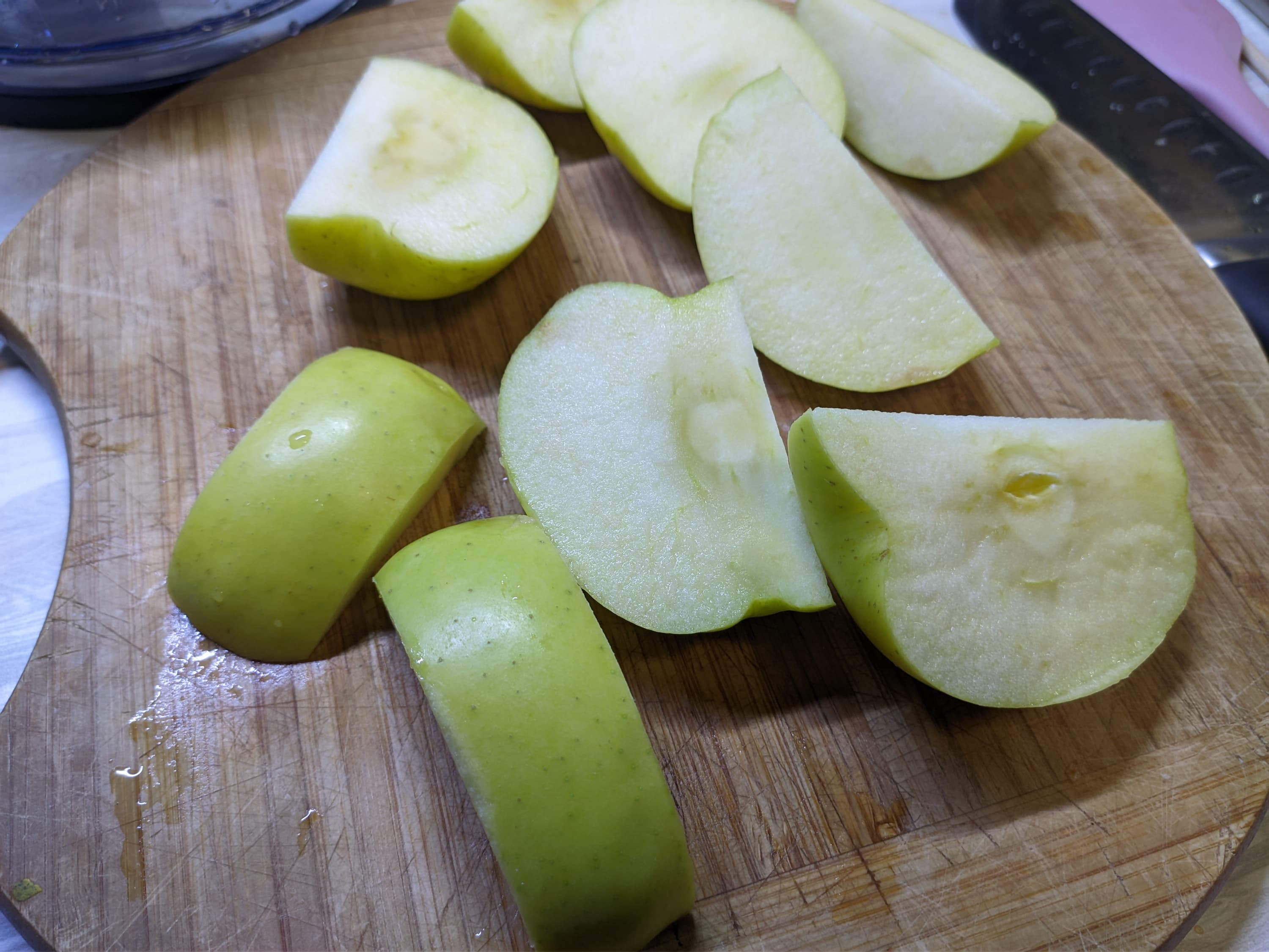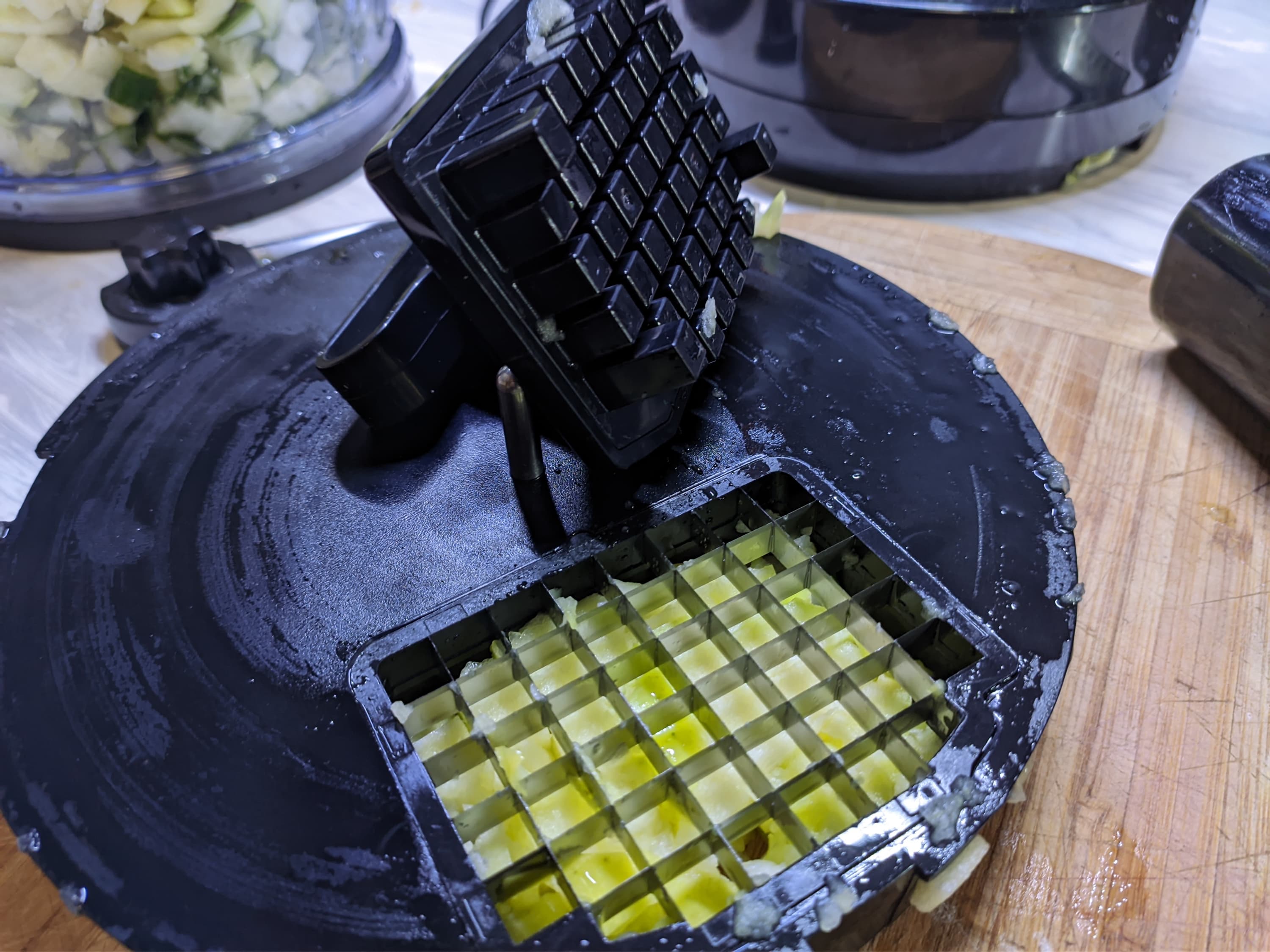 Далее мы взялись за тестирование диска для нарезки кубиками и выбрали для этого яблоки и огурцы.