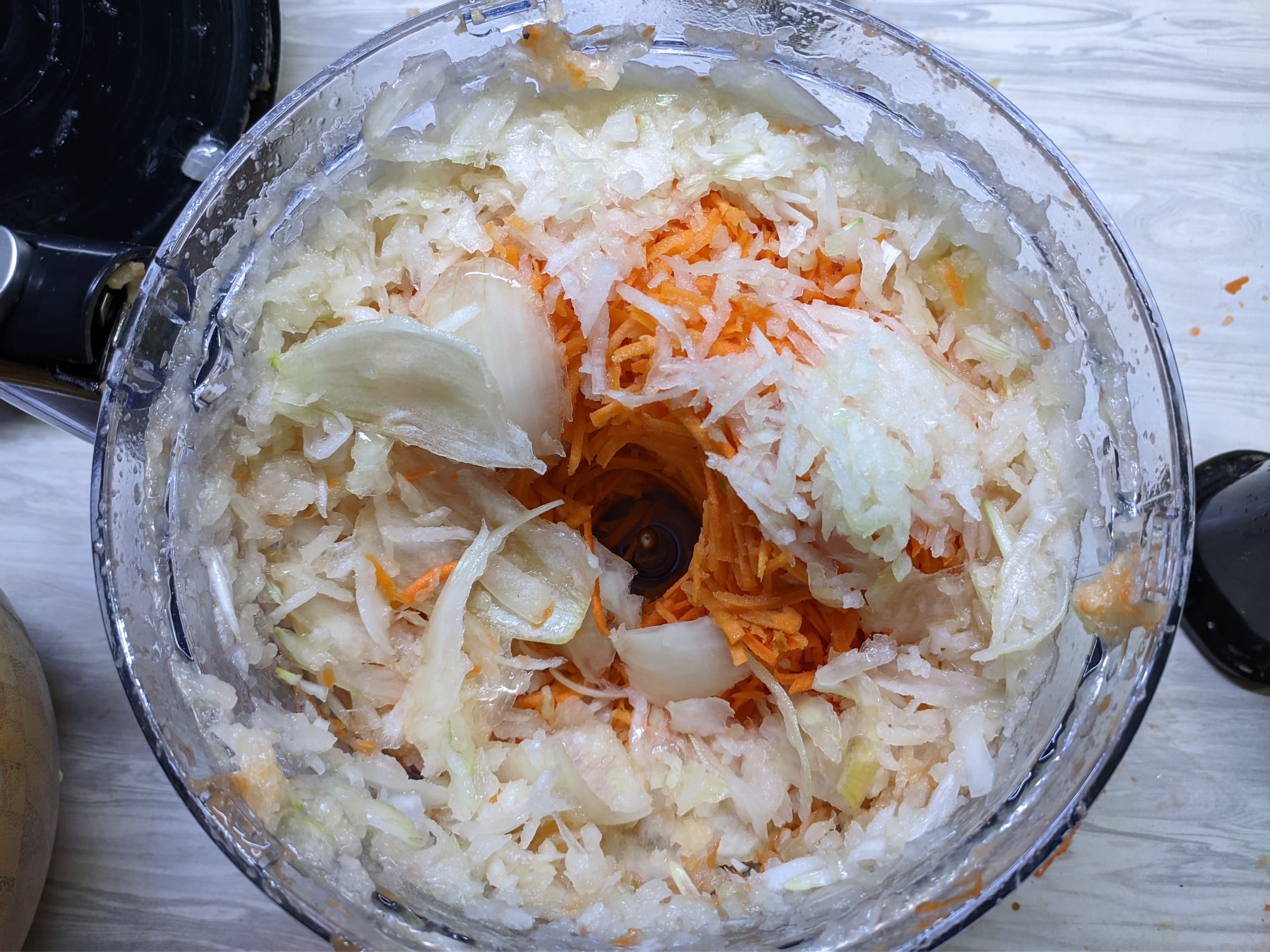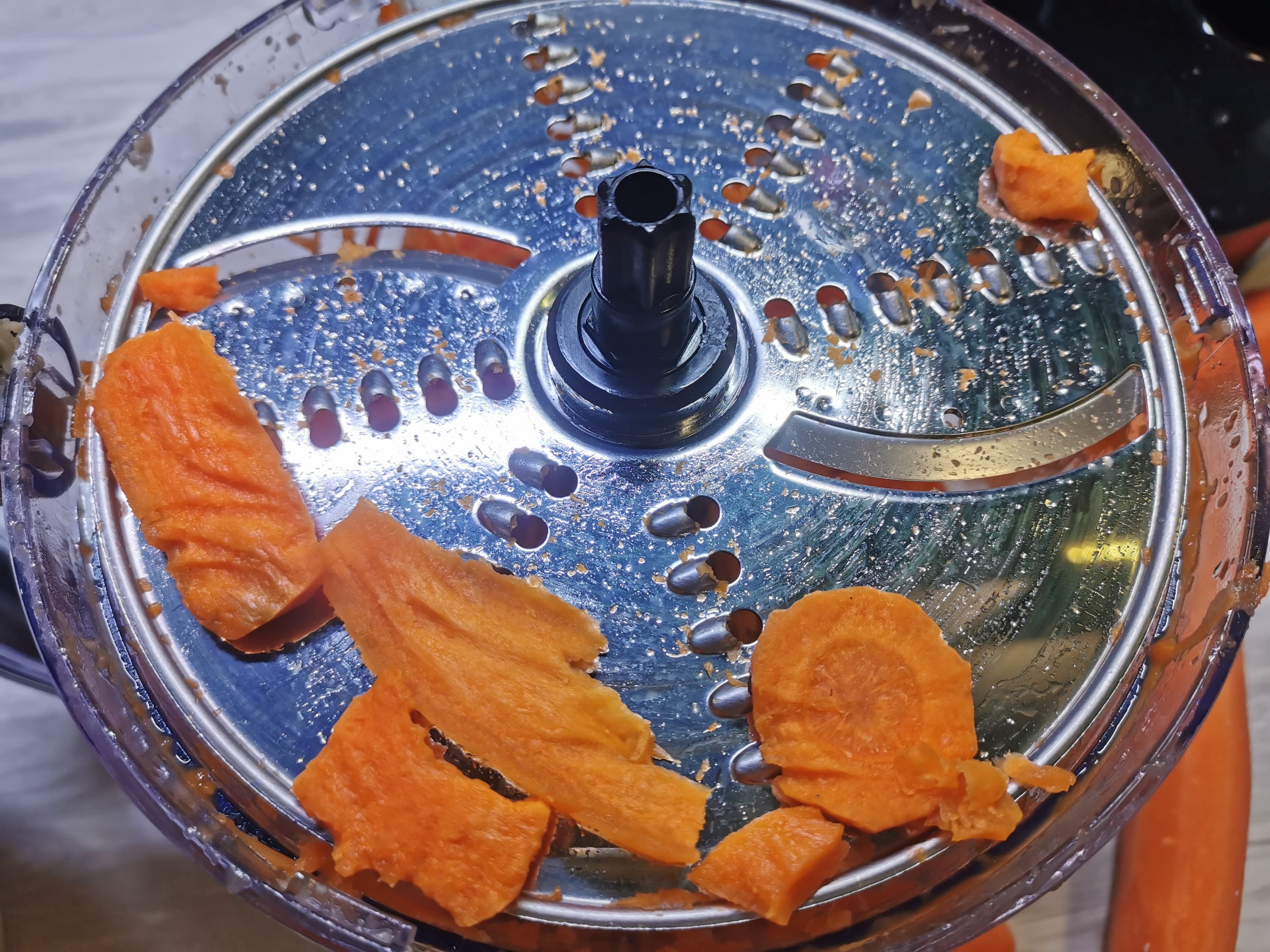 Внутрь также проскочили несколько луковых слоев. Но картина в целом была оптимистичная: диск для натирания справился с морковью и даже с большей частью лука.