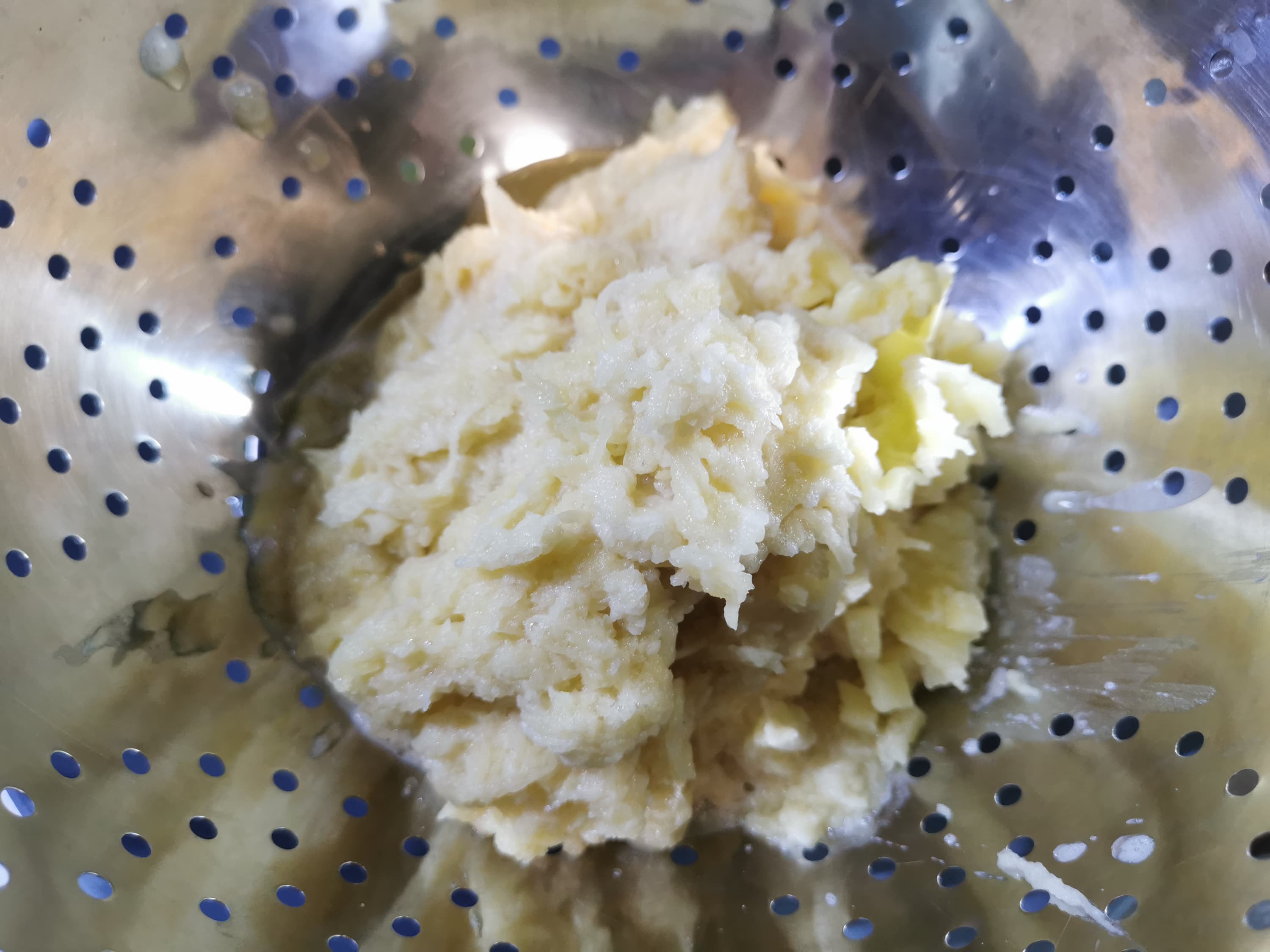Мы переложили картофель в дуршлаг, чтобы лишняя жидкость стекла.