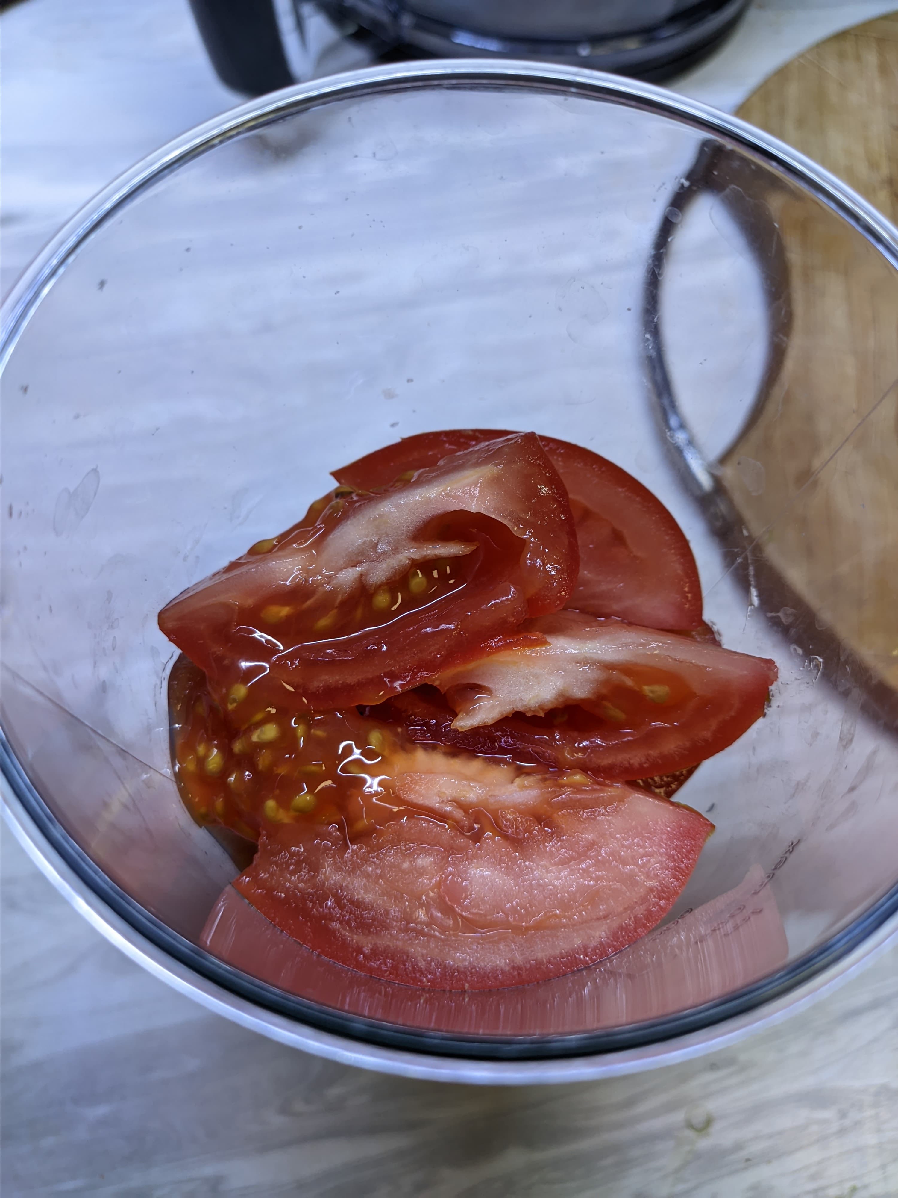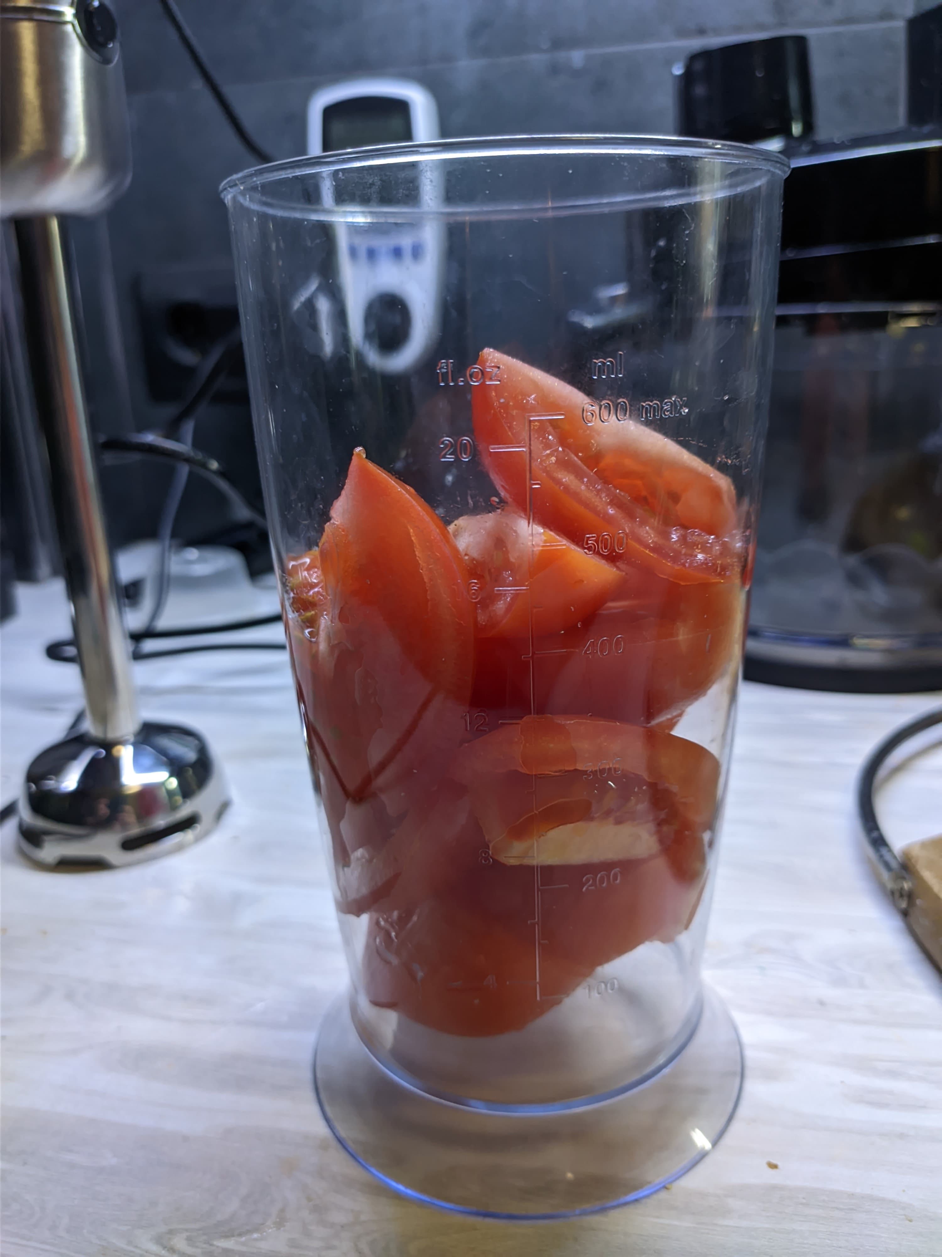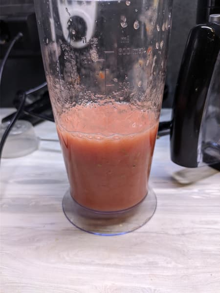 - Измельчение томатов (погружной блендер)