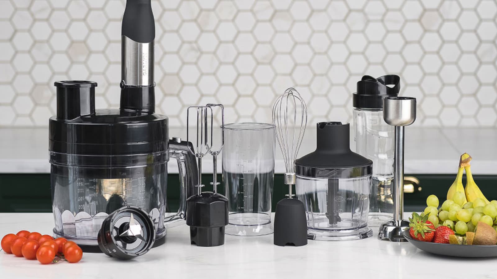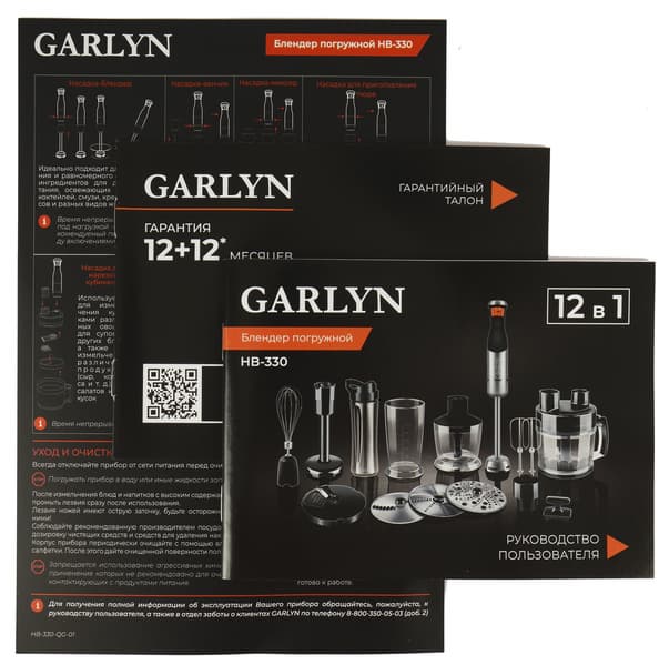 Garlyn HB-330 — это не просто погружной блендер, а полноценный кухонный комбайн. Многофункциональное устройство «12 в 1», как обещает производитель, способно в считанные секунды приготовить пюре, нашинковать, натереть, нарезать кубиками, палочками, размешать, измельчить и взбить.