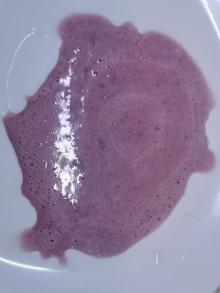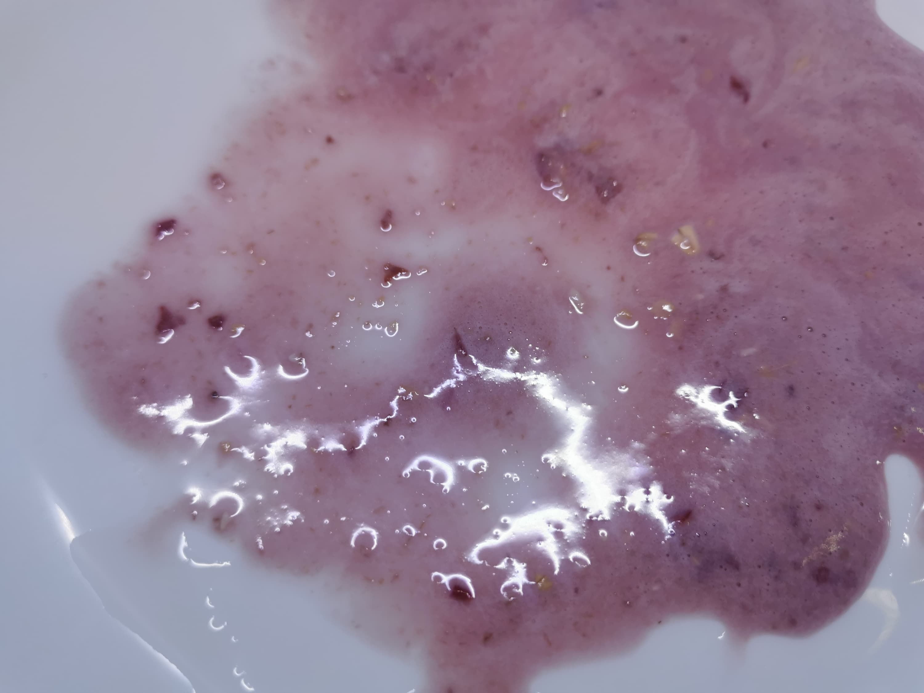 При ближайшем рассмотрении можно обнаружить неперемолотые частички кожуры ягод и небольшие кусочки геркулеса, что допустимо и не влияет на качество смузи.
