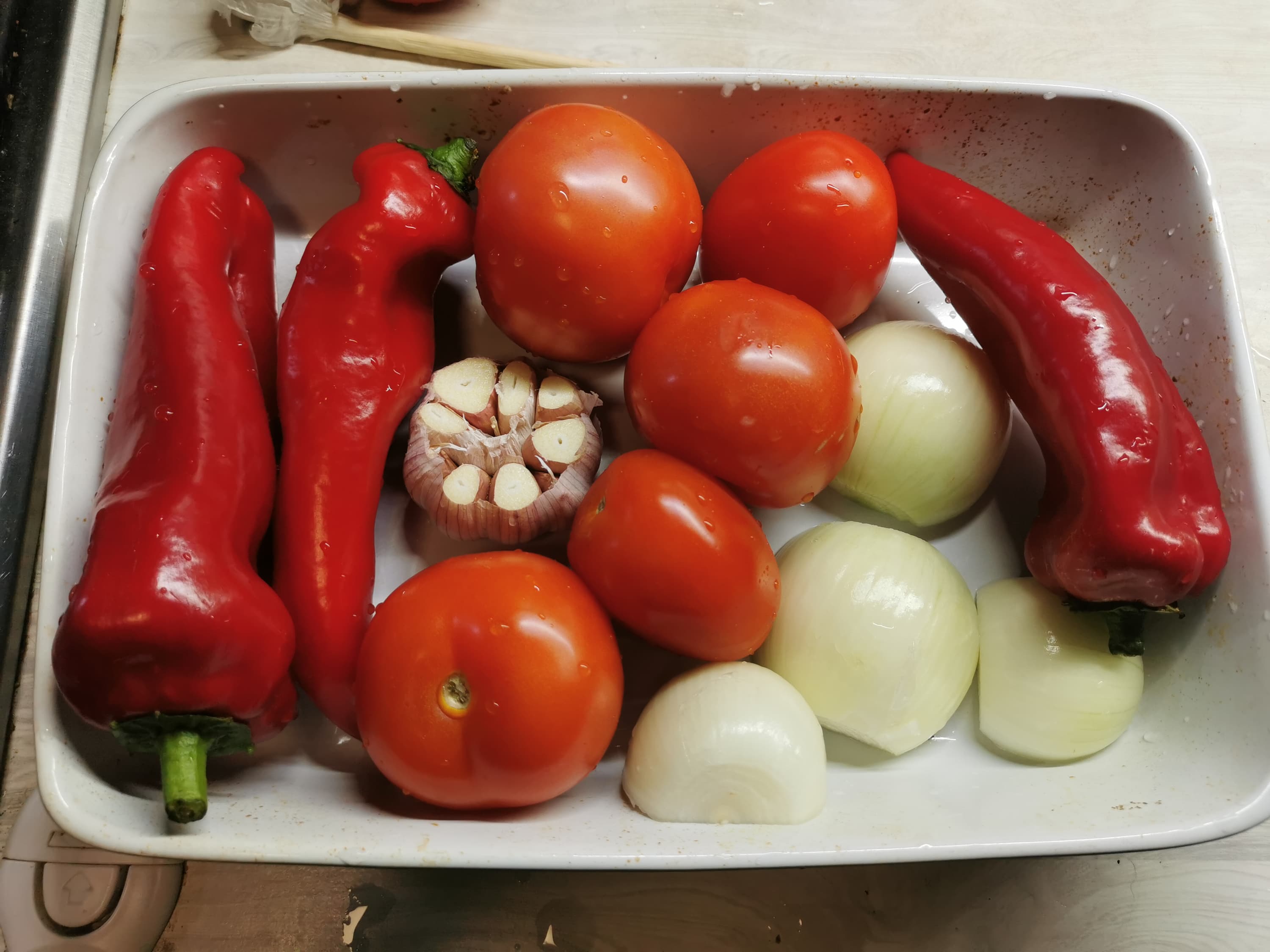 Овощи мы помыли и выложили в форму для запекания.